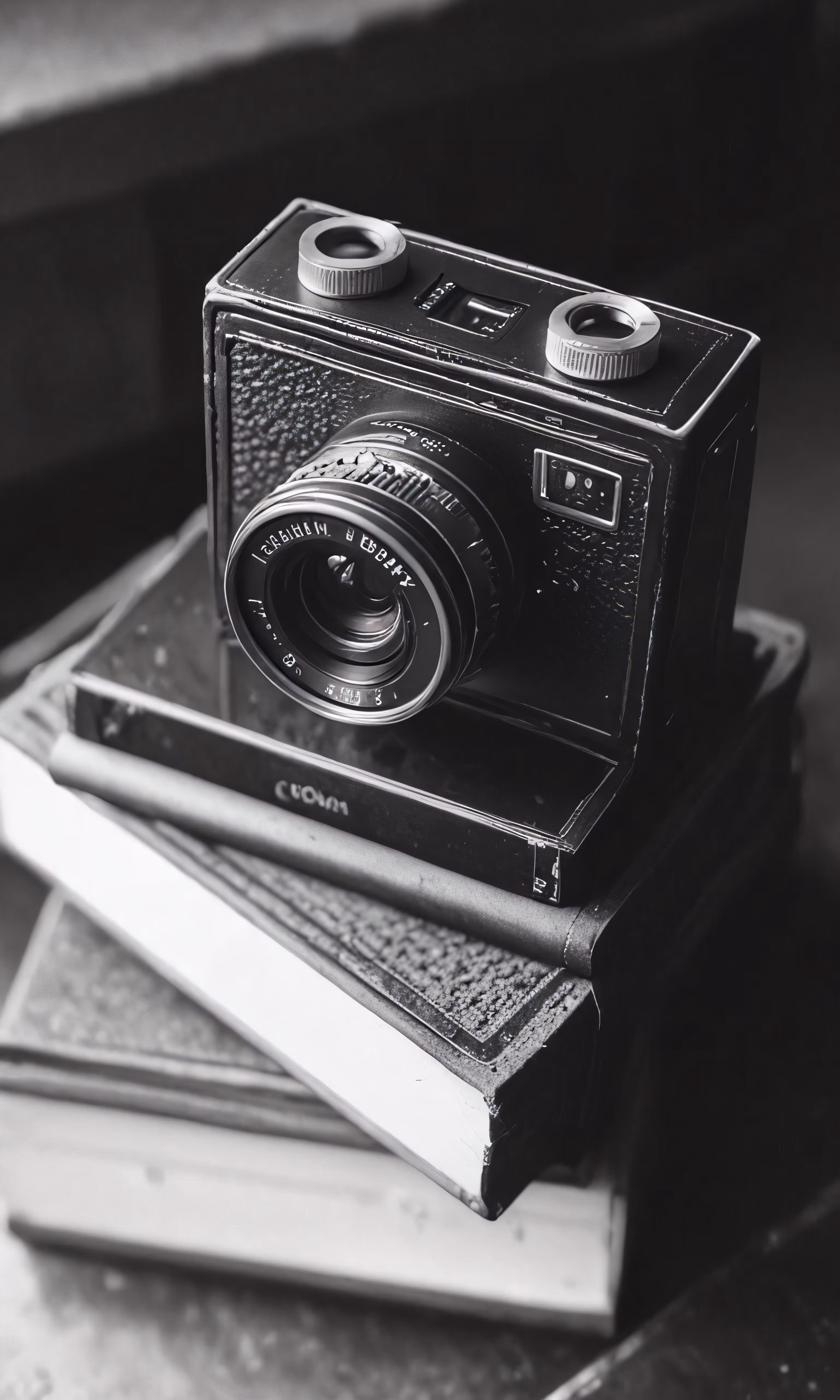 High resolution picture, free to use, a camera sitting on top of three books