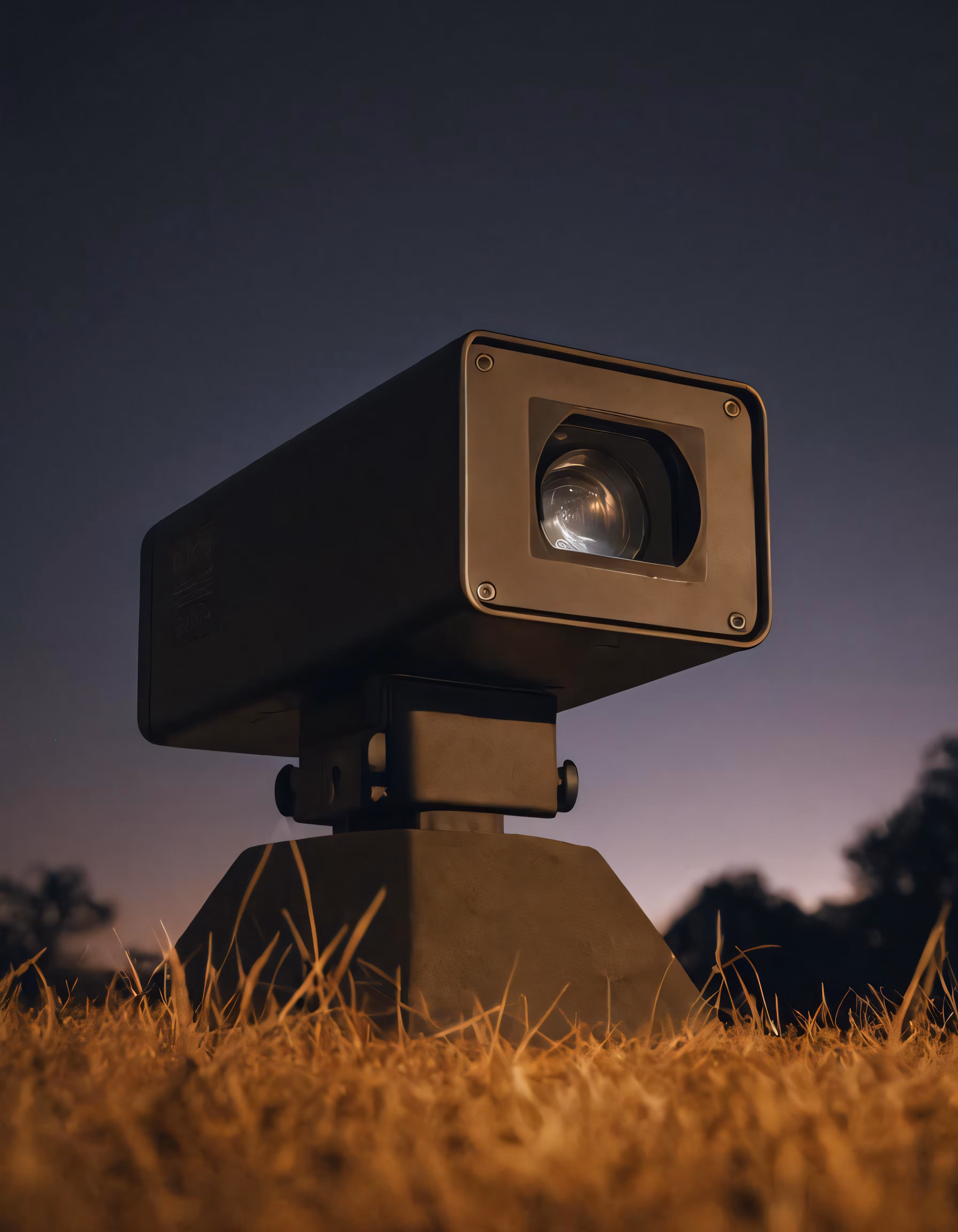 High resolution picture, free to use, a camera with a view of trees in the distance