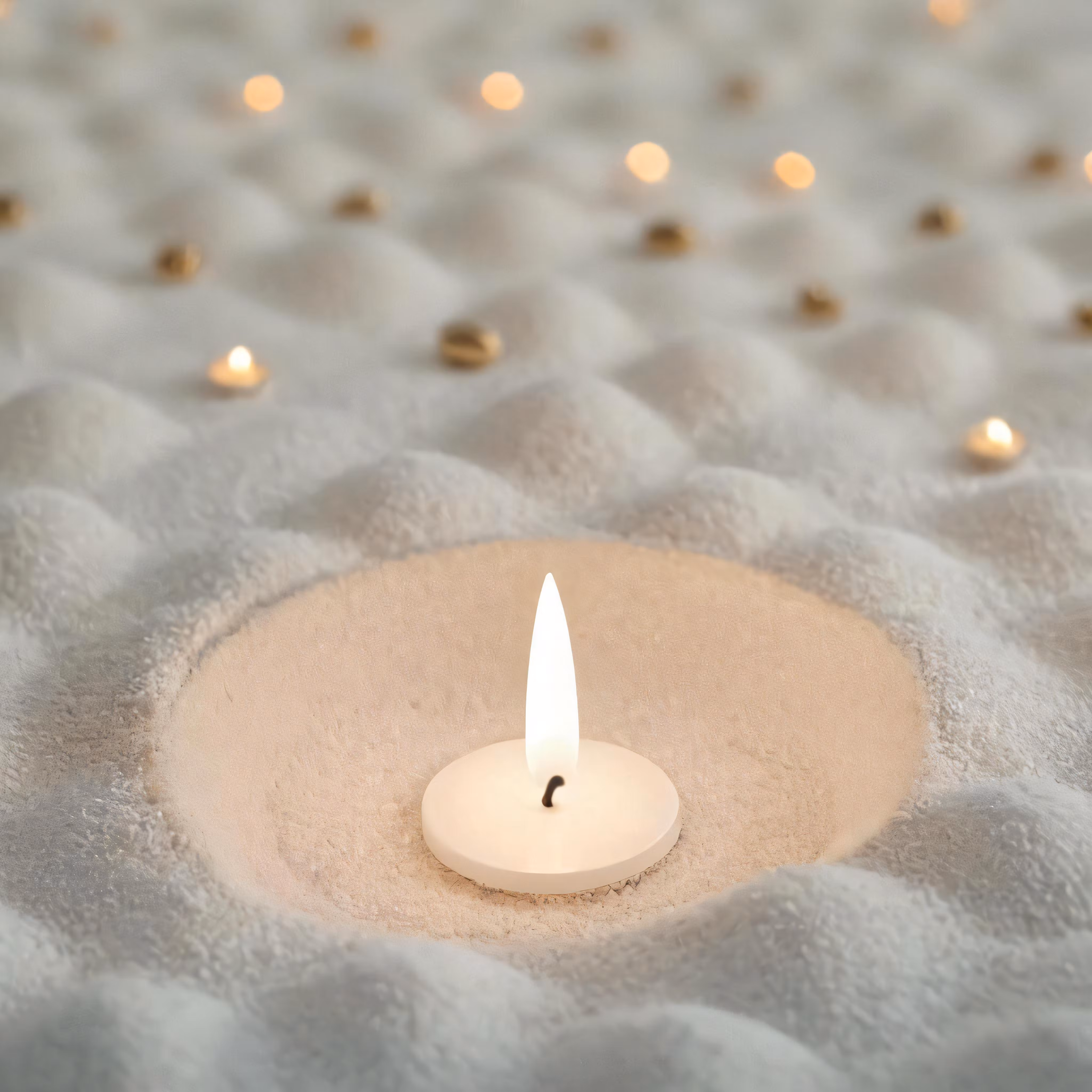 High resolution picture, free to use, a candle sitting in the middle of a quilt