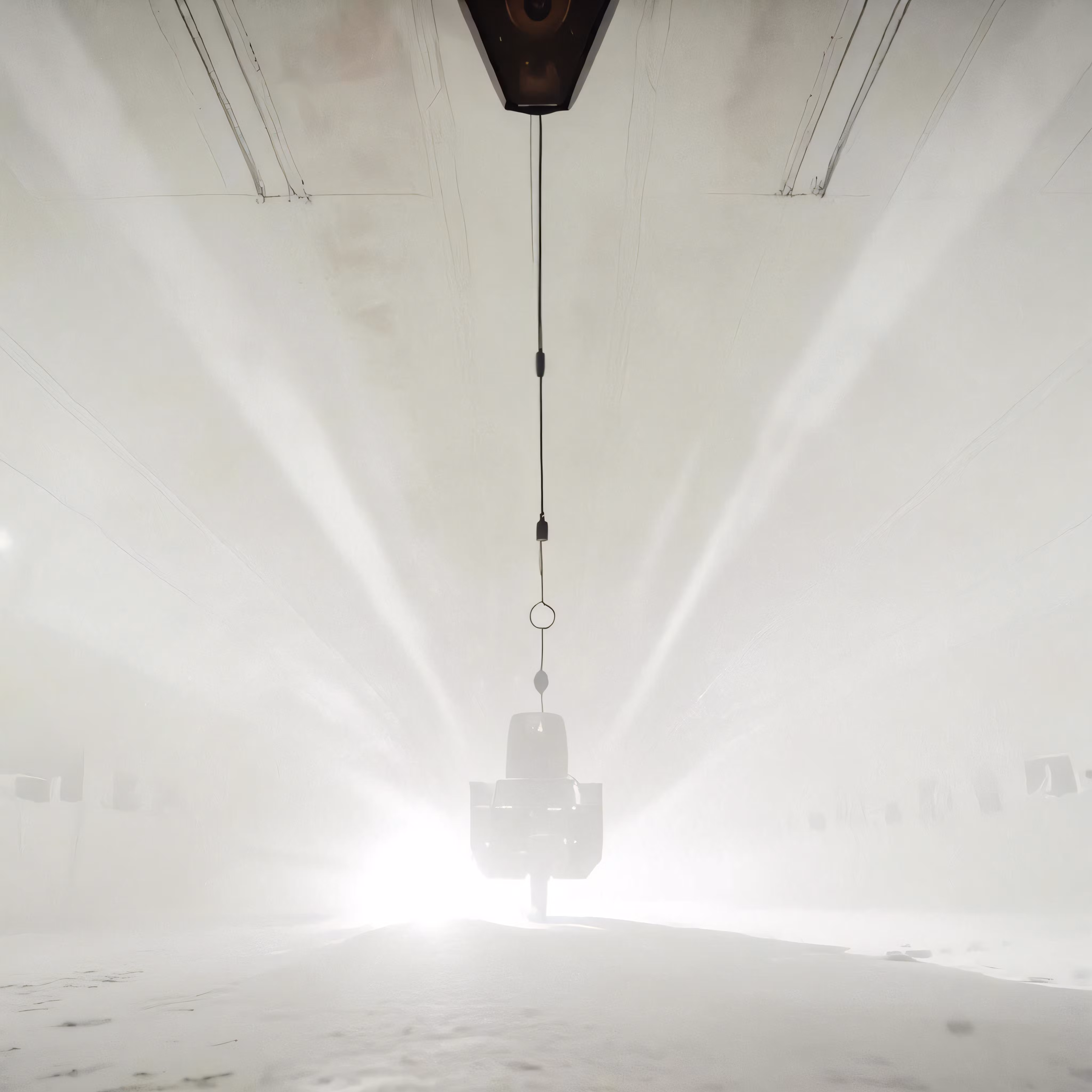 High resolution picture, free to use, a car hangs in the fog under a beam