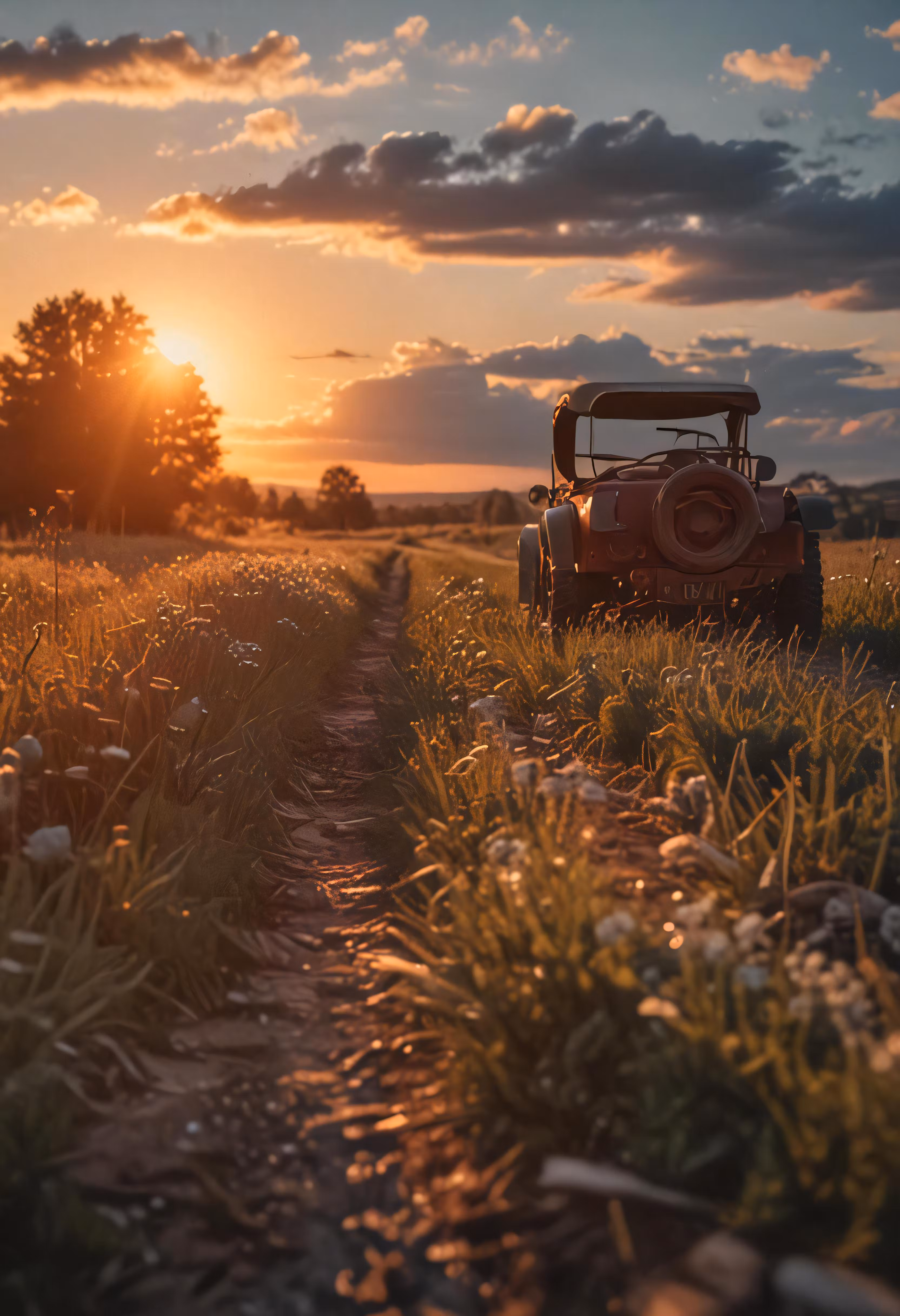 High resolution picture, free to use, a car in the middle of an open field
