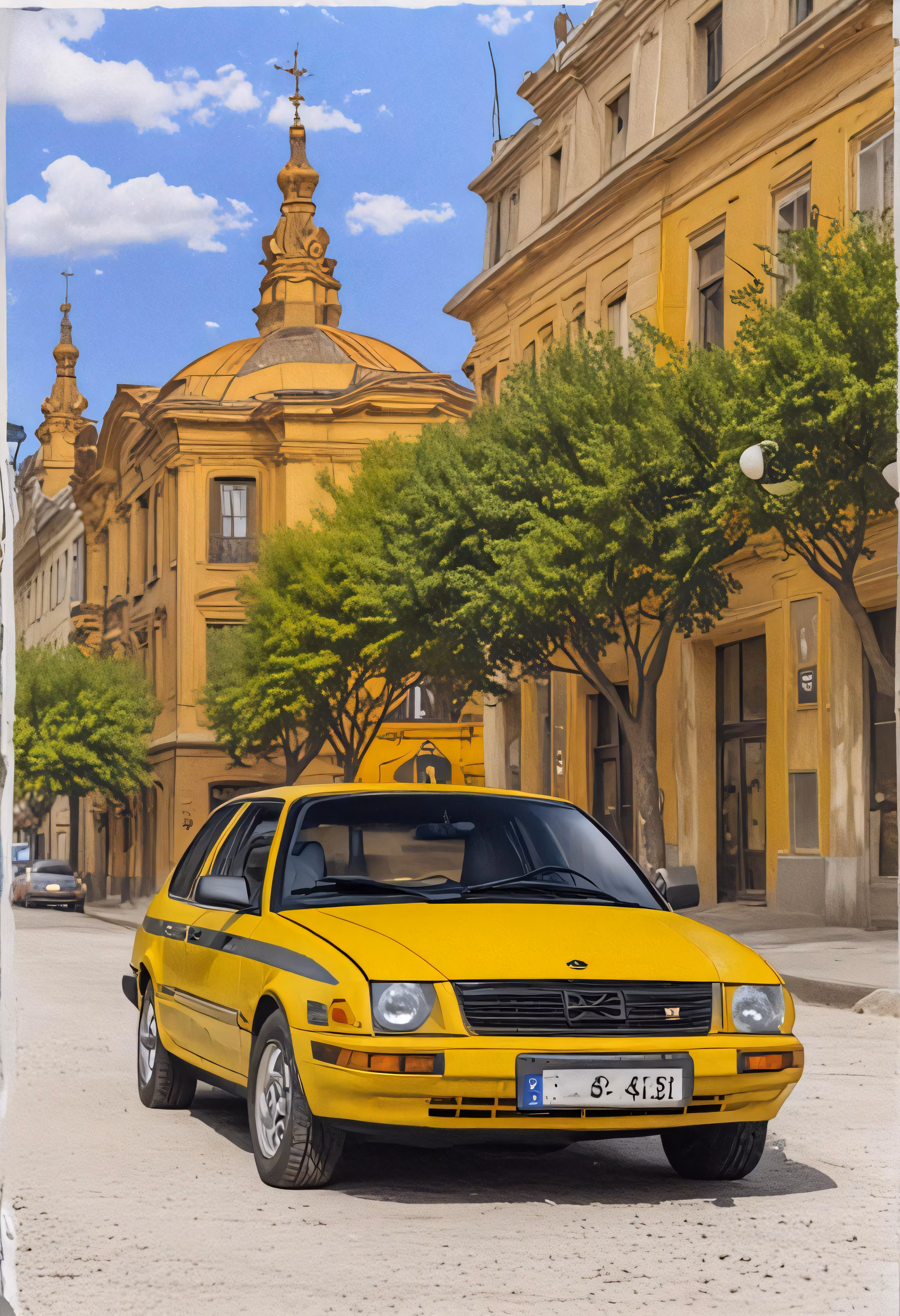 High resolution picture, free to use, a car that is parked near some trees
