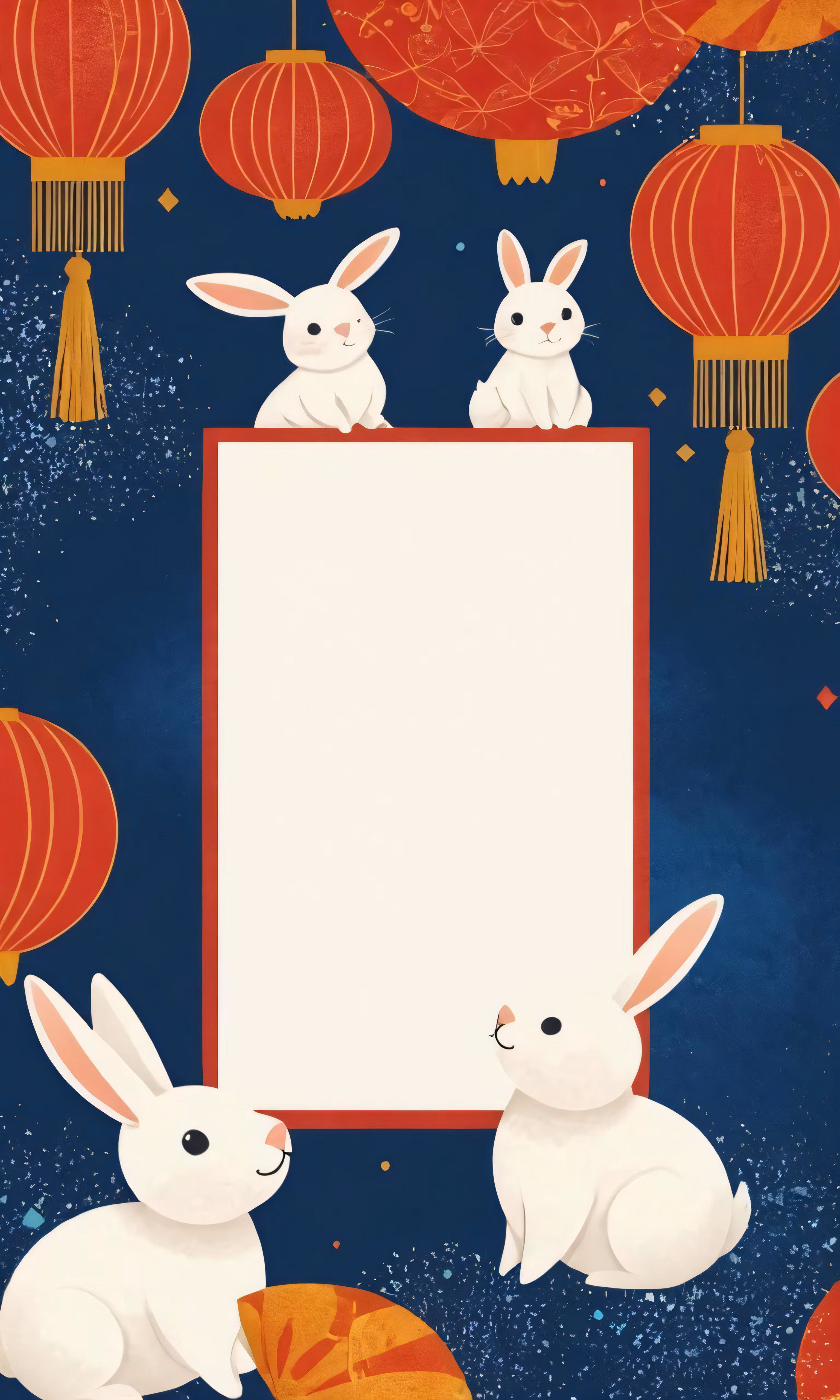 High resolution picture, free to use, a card with two bunnies, two lanterns and paper