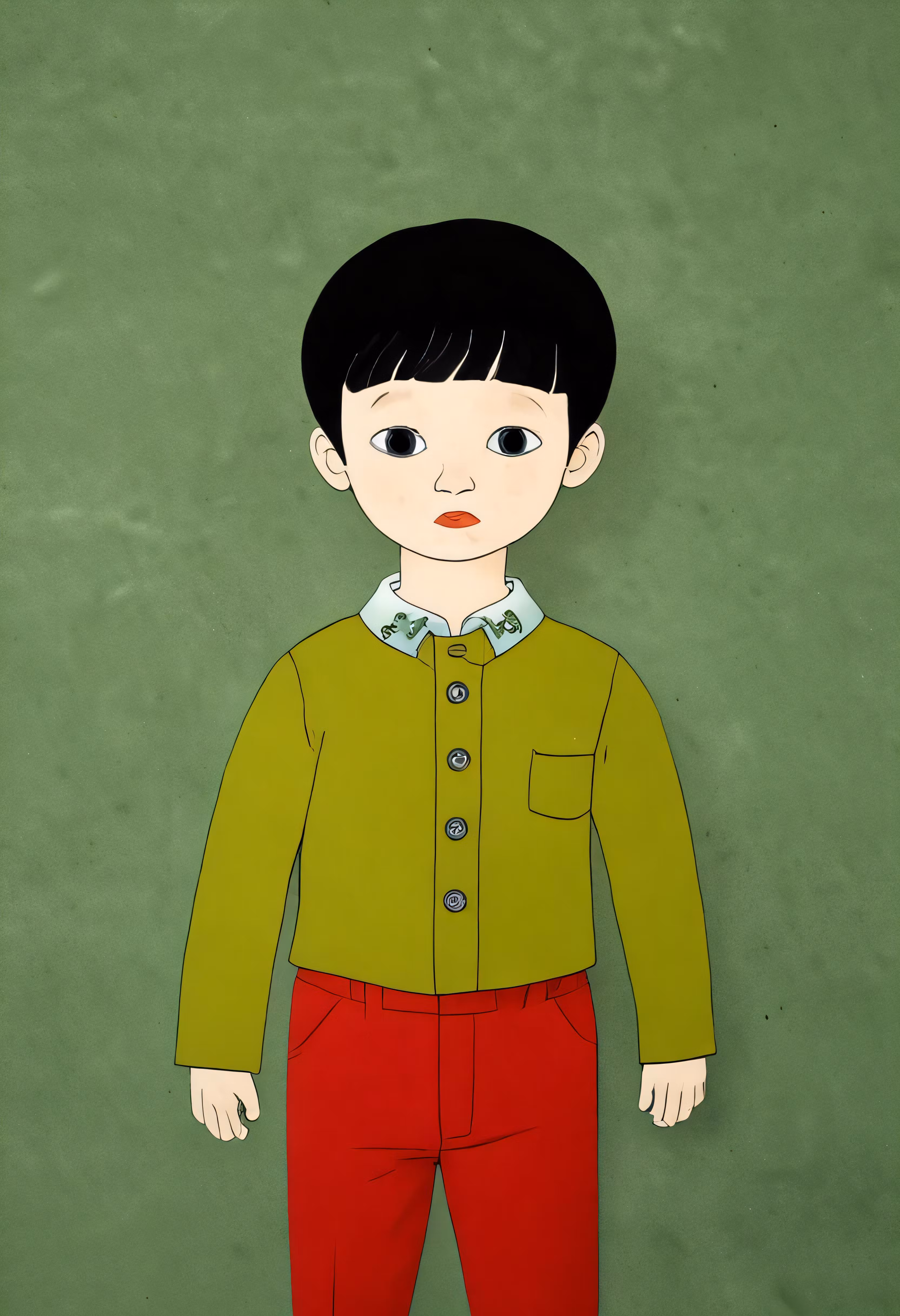 High resolution picture, free to use, a cardboard cutout shows the child in red pants