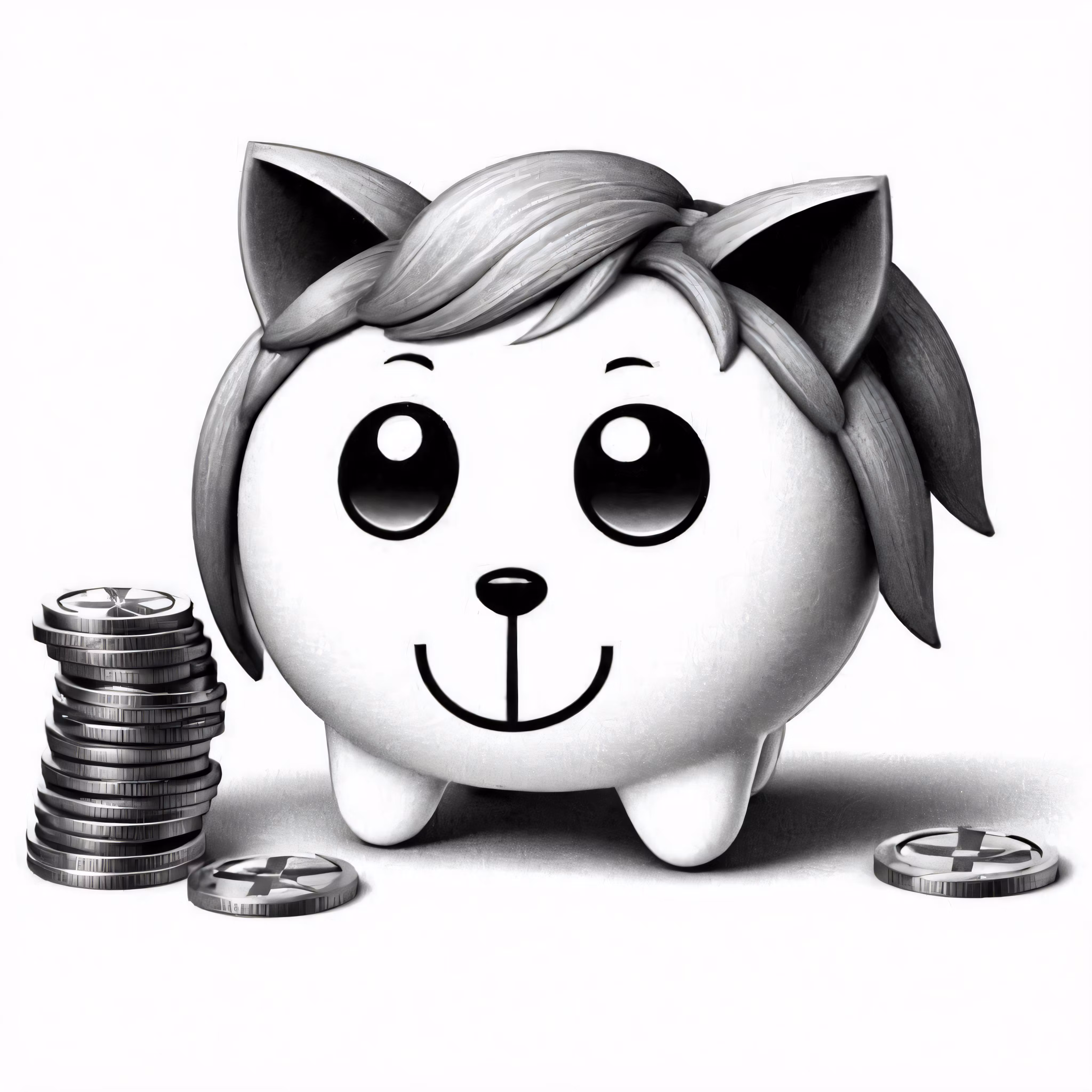 High resolution picture, free to use, a cartoon animal sits near a pile of money