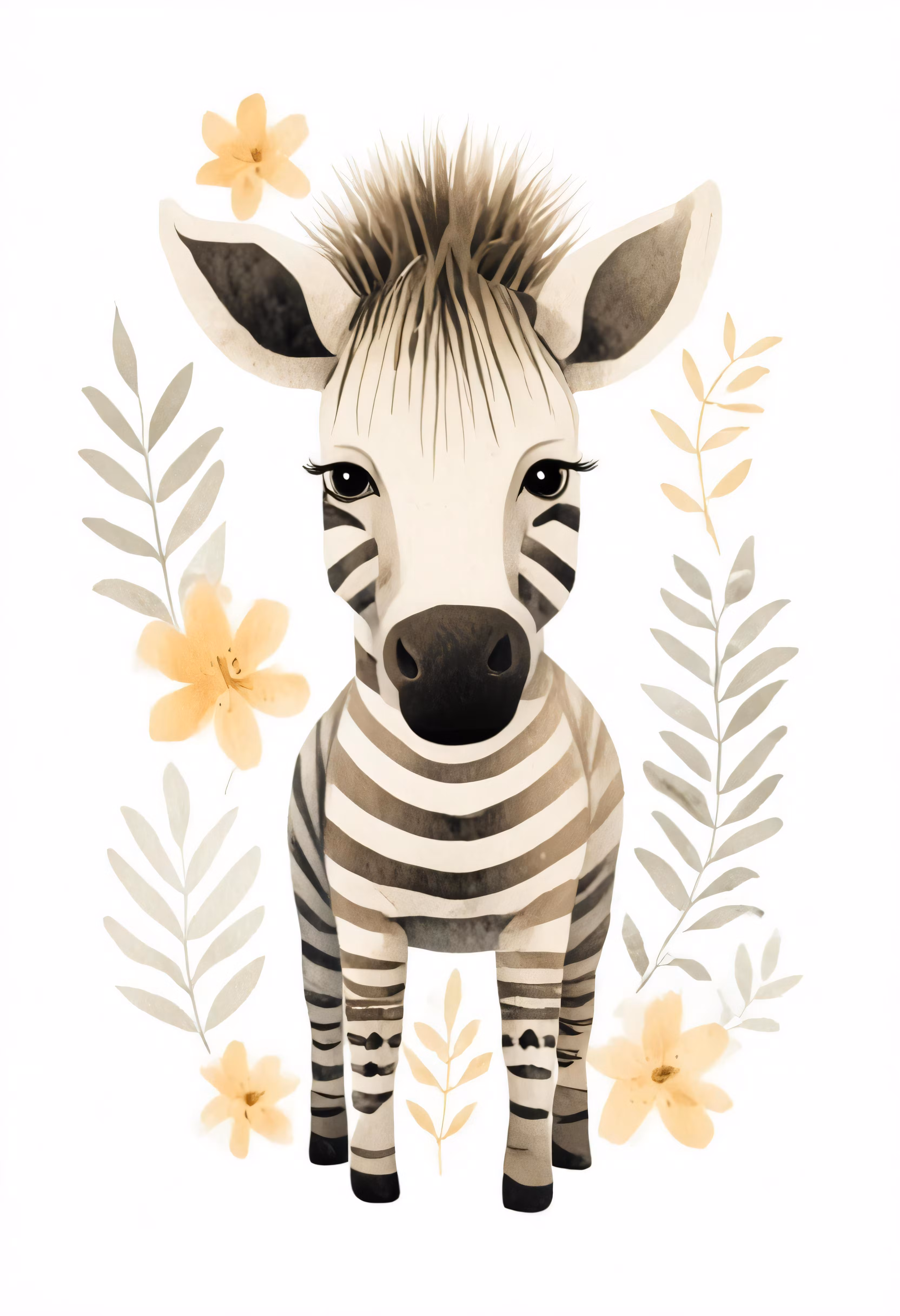 High resolution picture, free to use, a cartoon animal wearing stripes and flowers with leaves