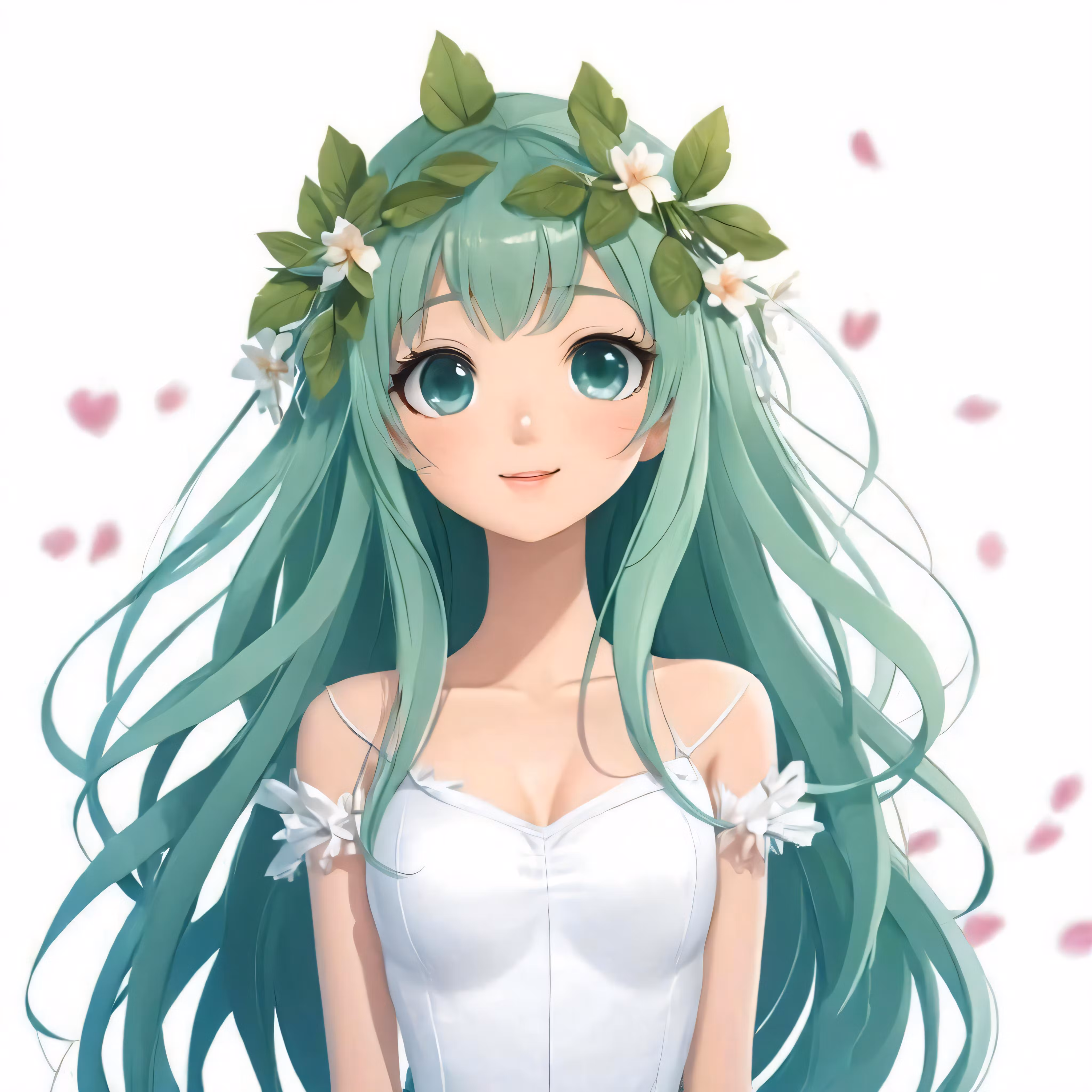 High resolution picture, free to use, a cartoon anime girl with green hair and long curly locks