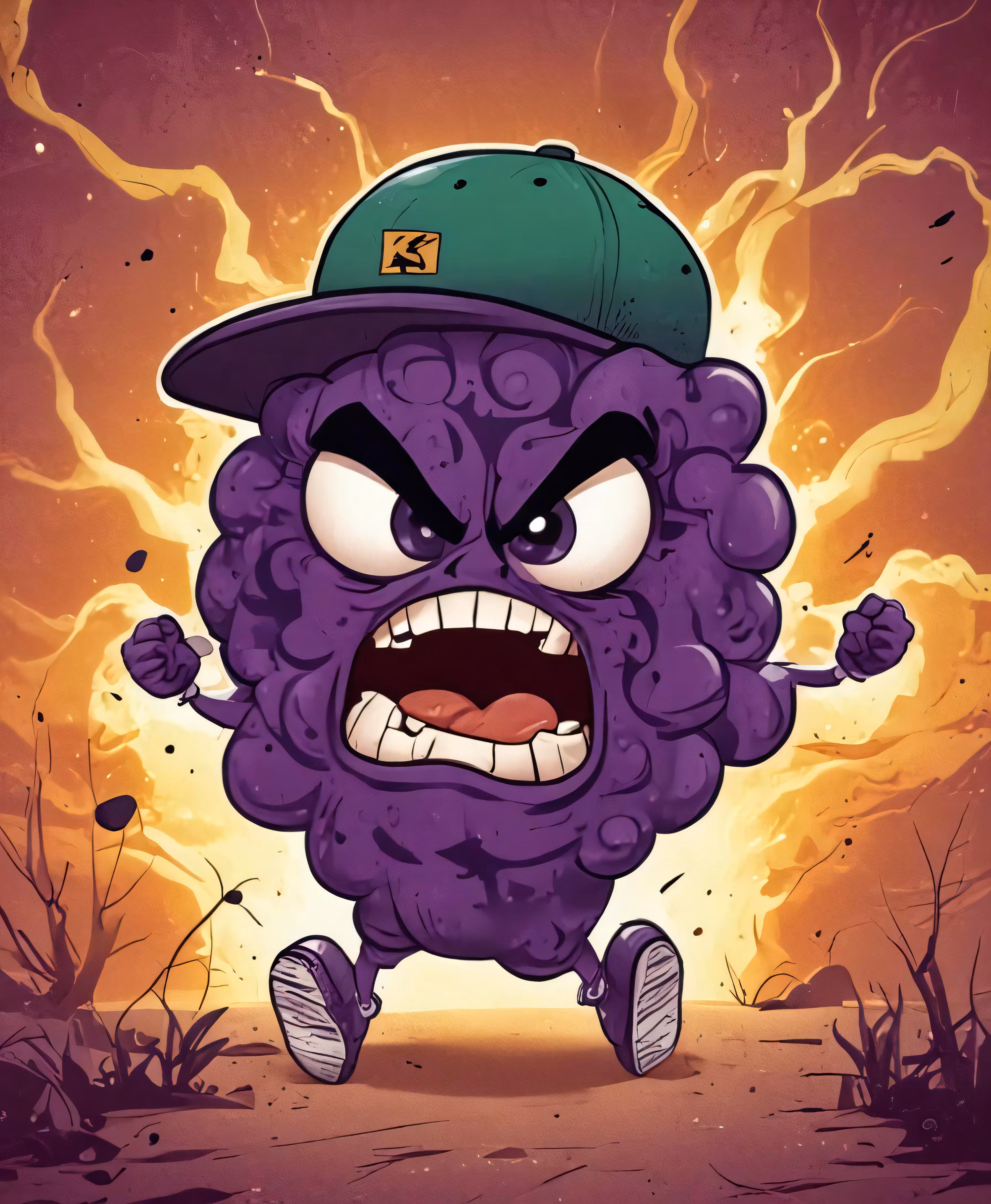 High resolution picture, free to use, a cartoon character in front of a fire background