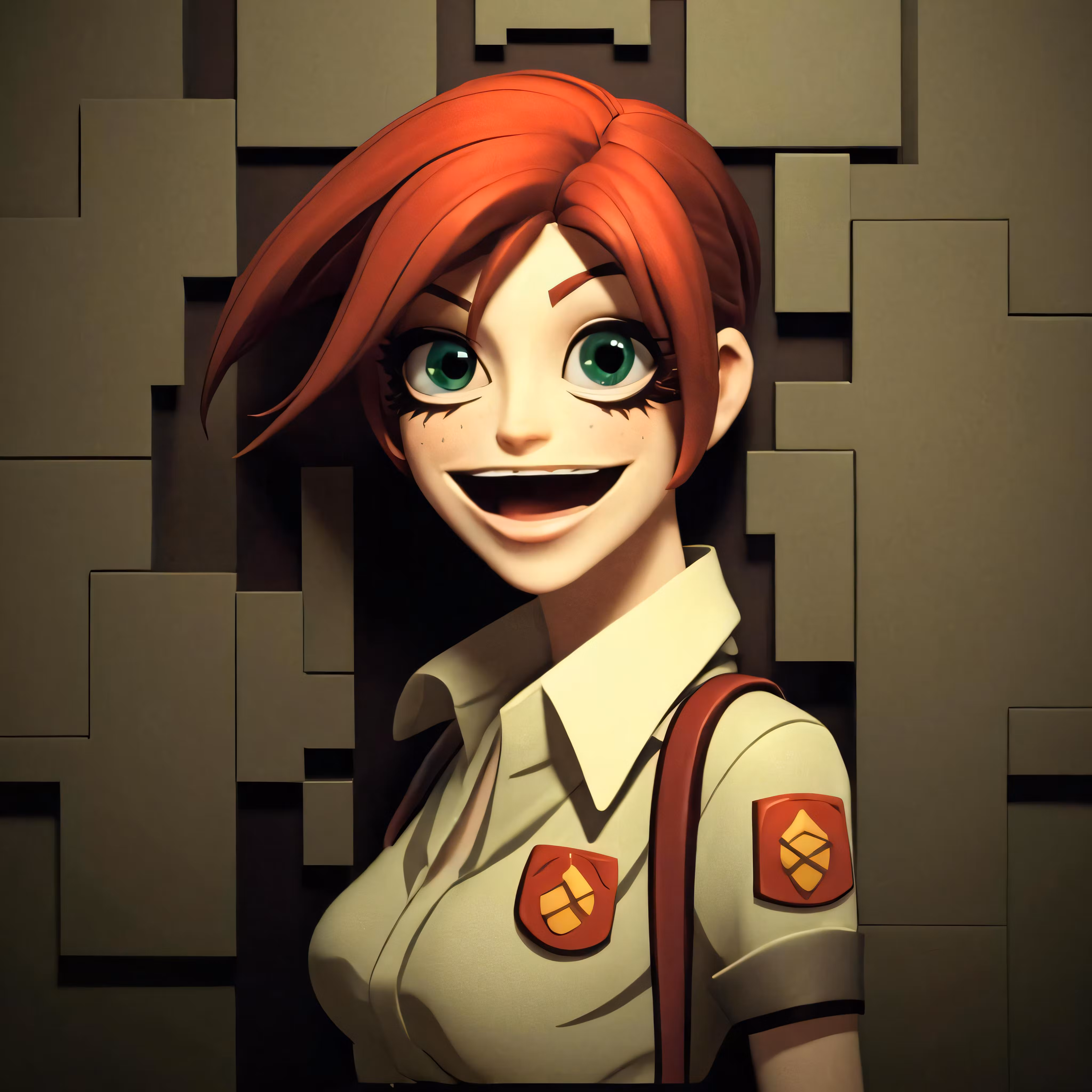 High resolution picture, free to use, a cartoon character with red hair wearing an uniform