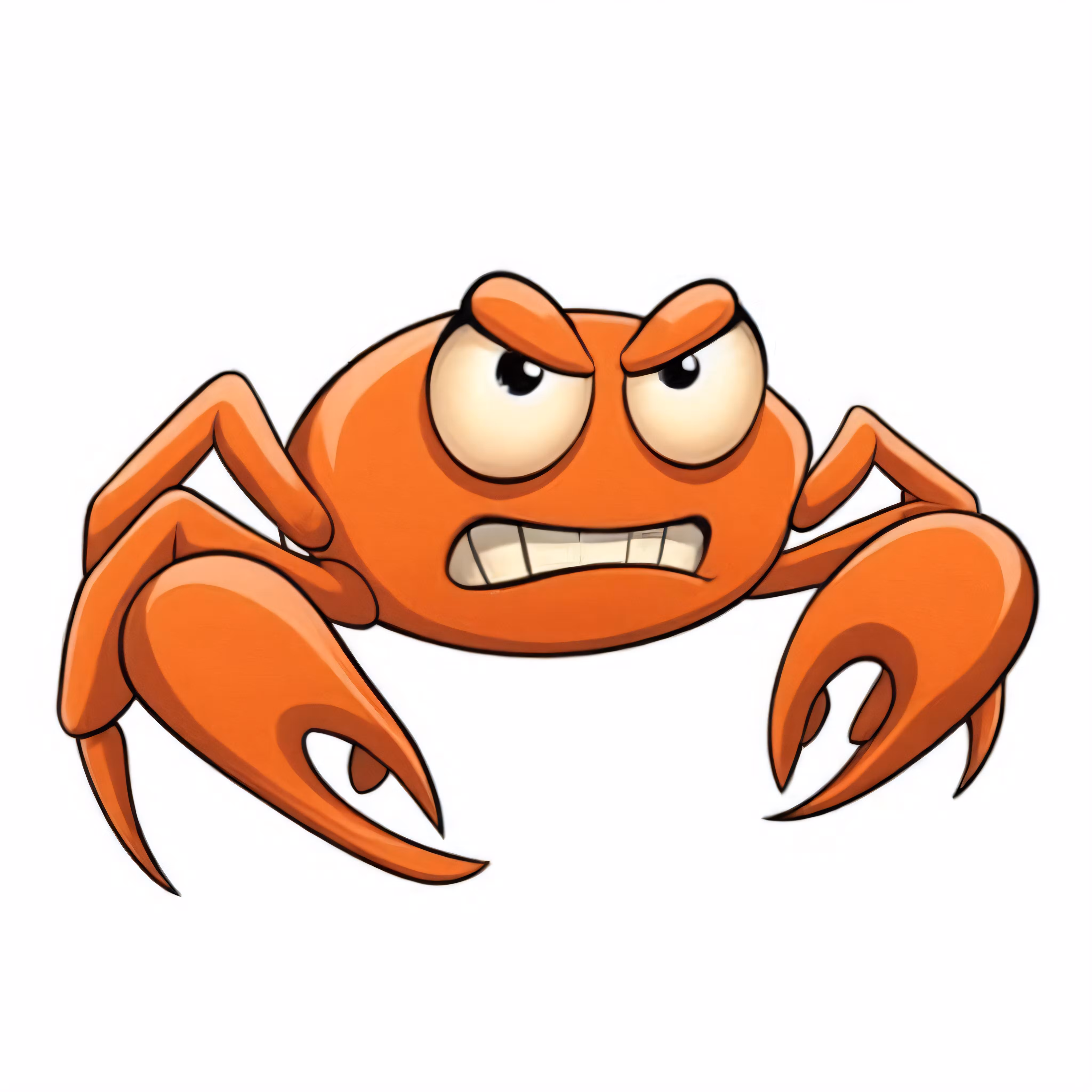 High resolution picture, free to use, a cartoon crab with two eyes looking angry