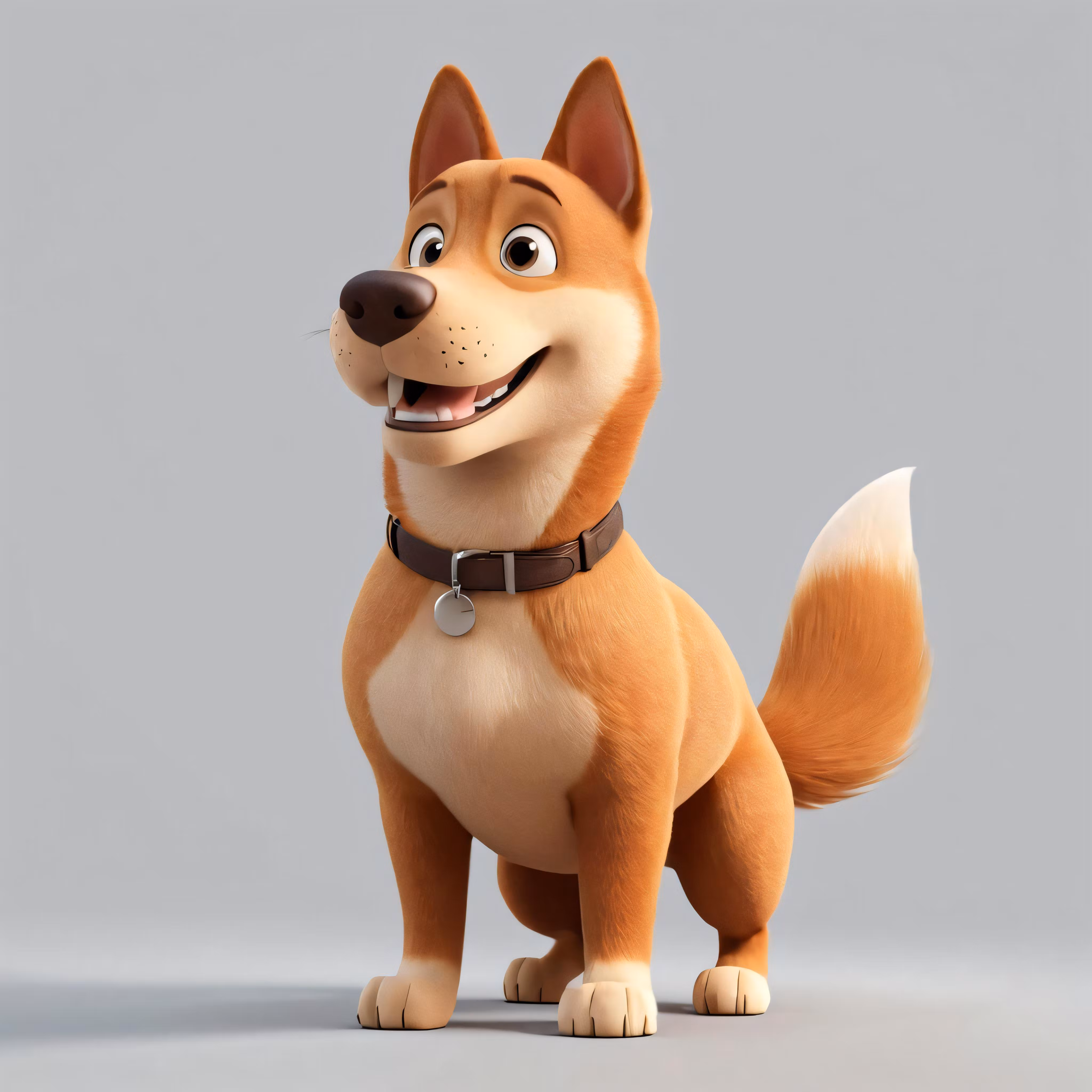 High resolution picture, free to use, a cartoon dog with eyes wide open, with a smile