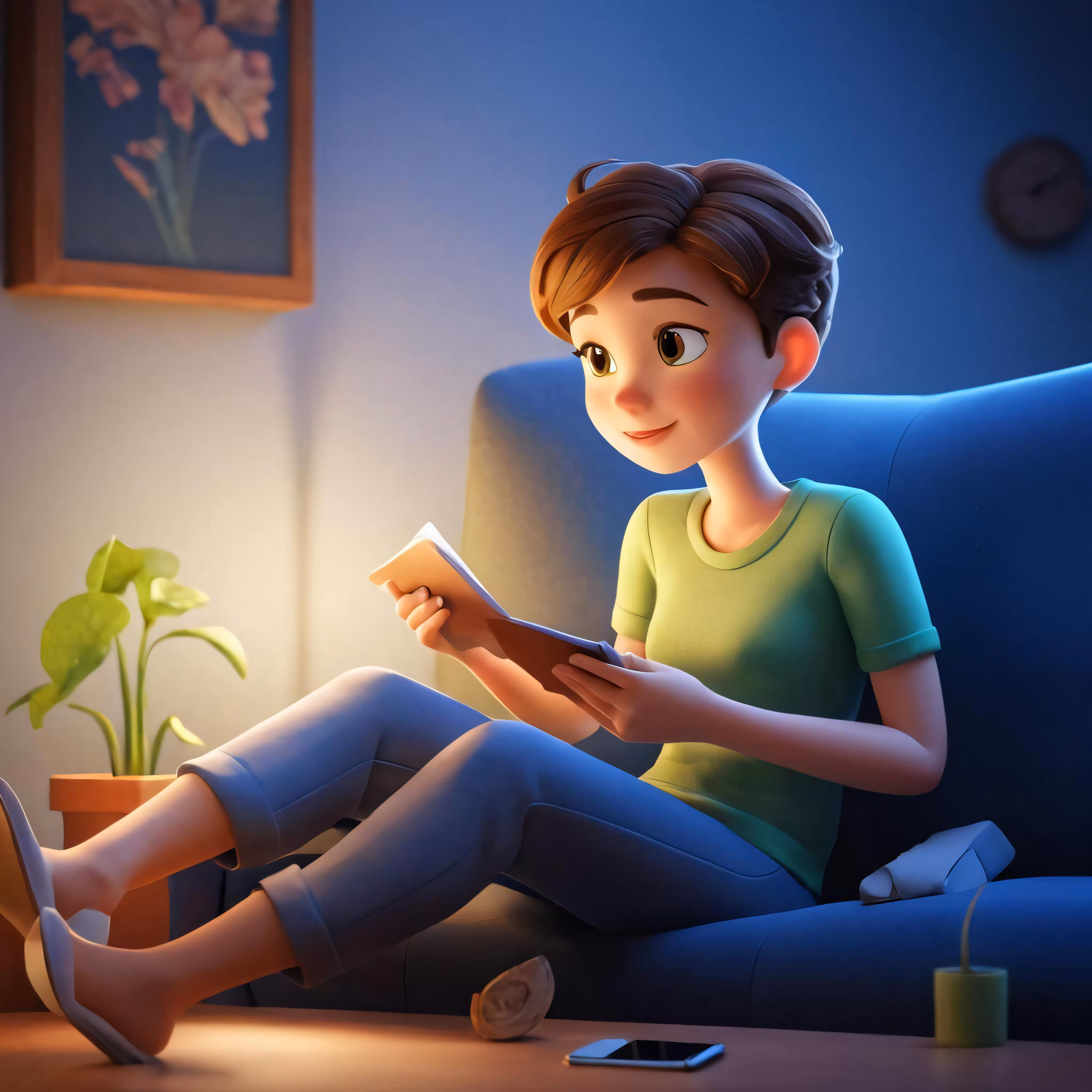 High resolution picture, free to use, a cartoon girl is reading a book and drinking coffee