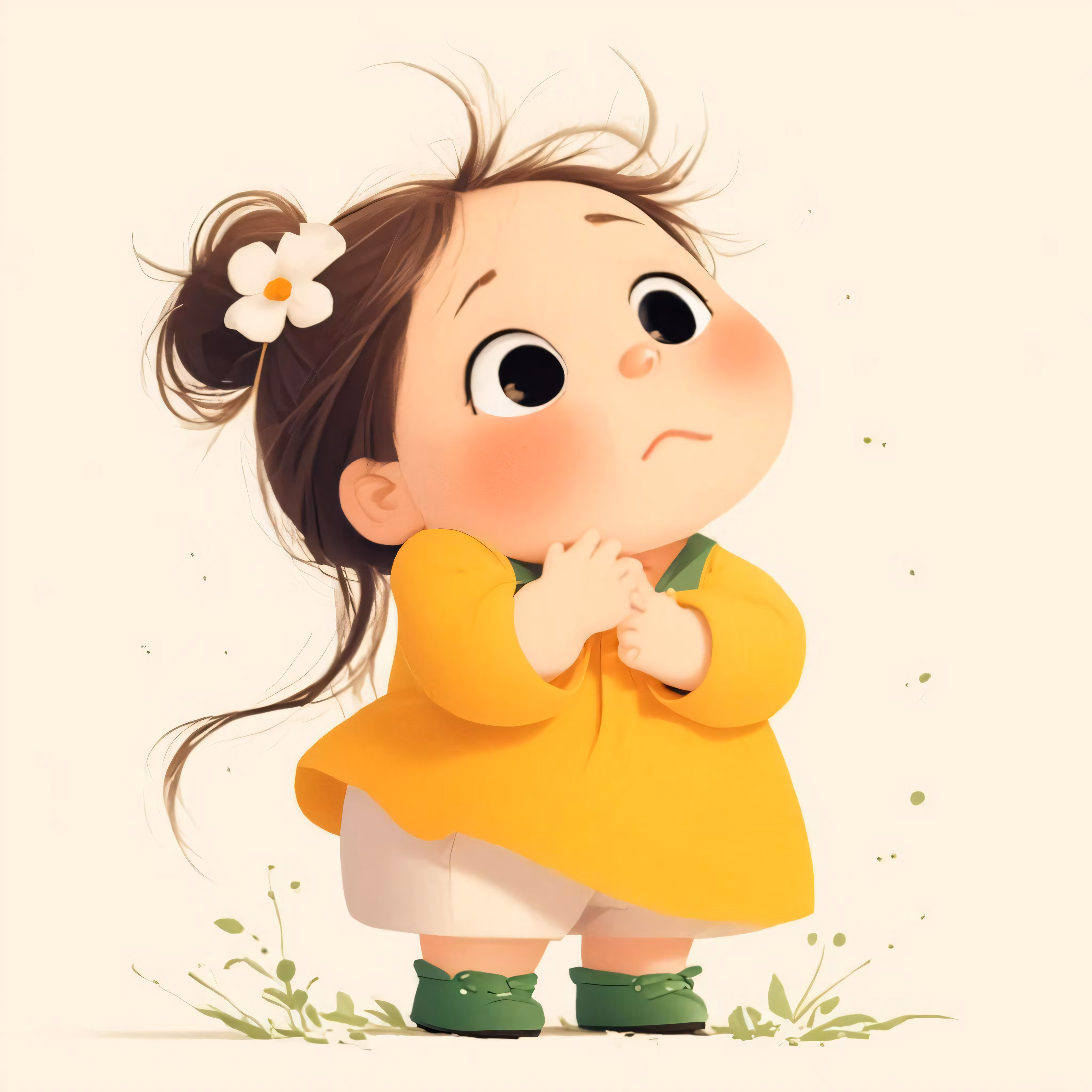 High resolution picture, free to use, a cartoon girl that is very confused by herself