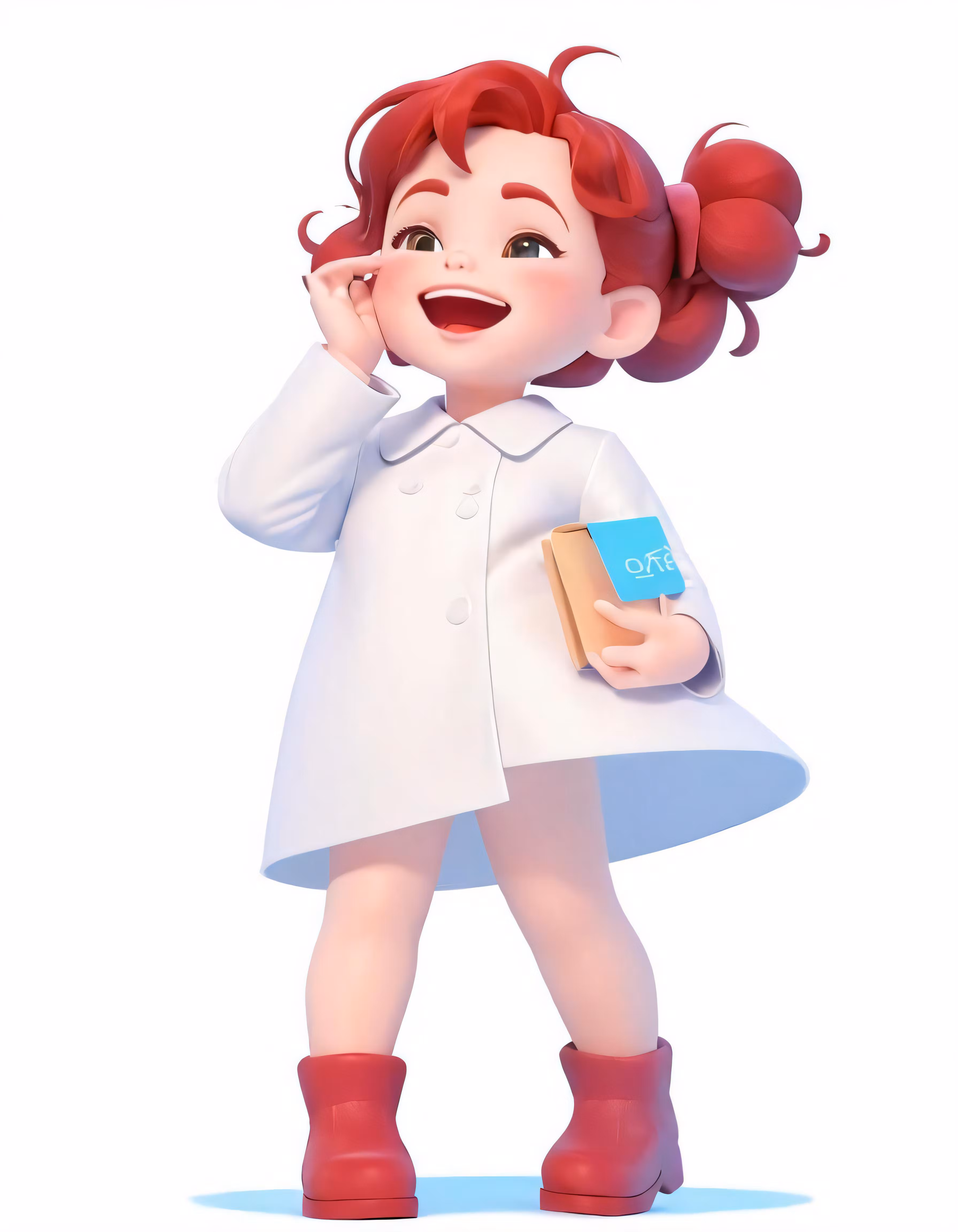 High resolution picture, free to use, a cartoon girl wearing white with red hair