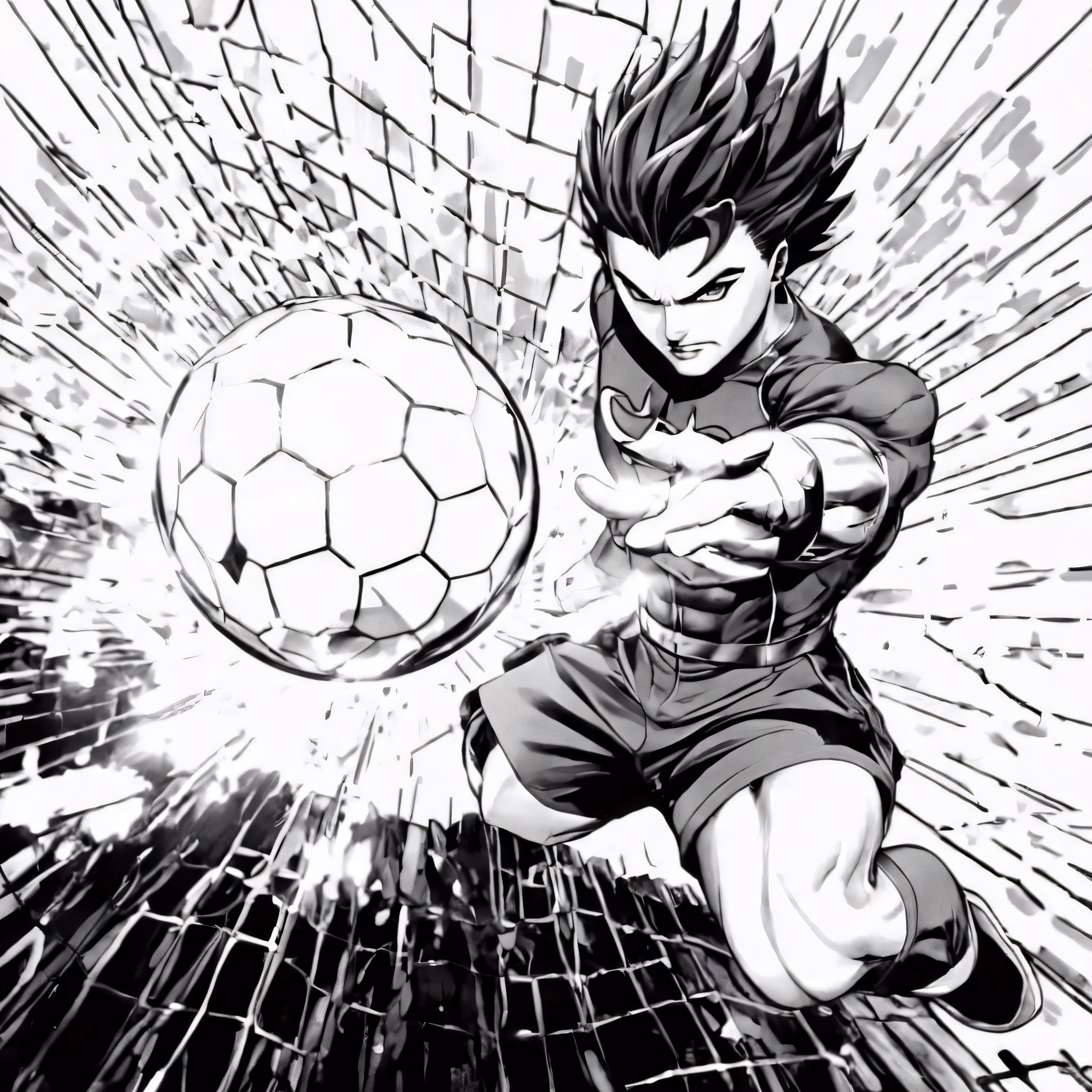 High resolution picture, free to use, a cartoon guy kicking a soccer ball in front of him