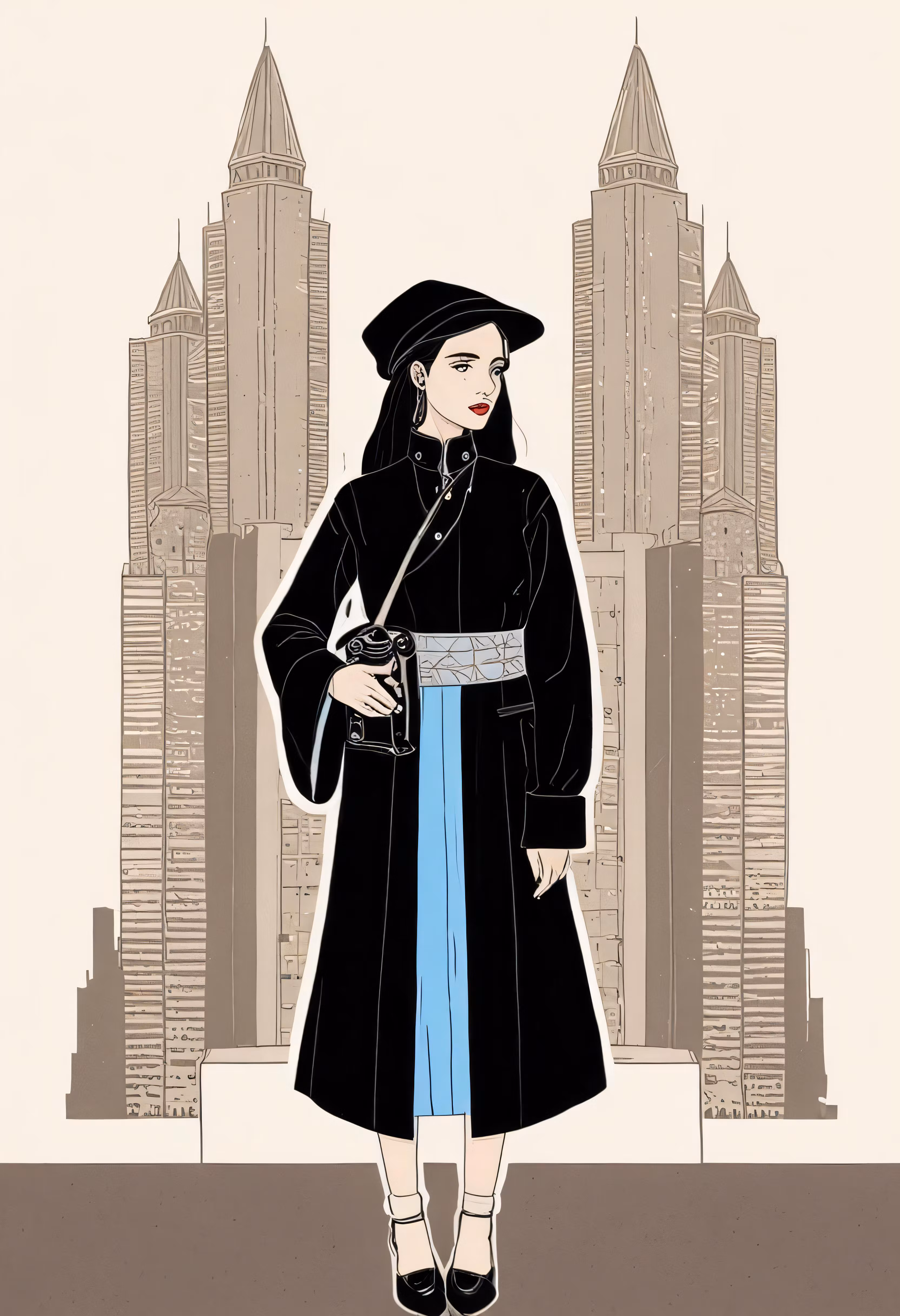 High resolution picture, free to use, a cartoon illustration of a lady in a black outfit