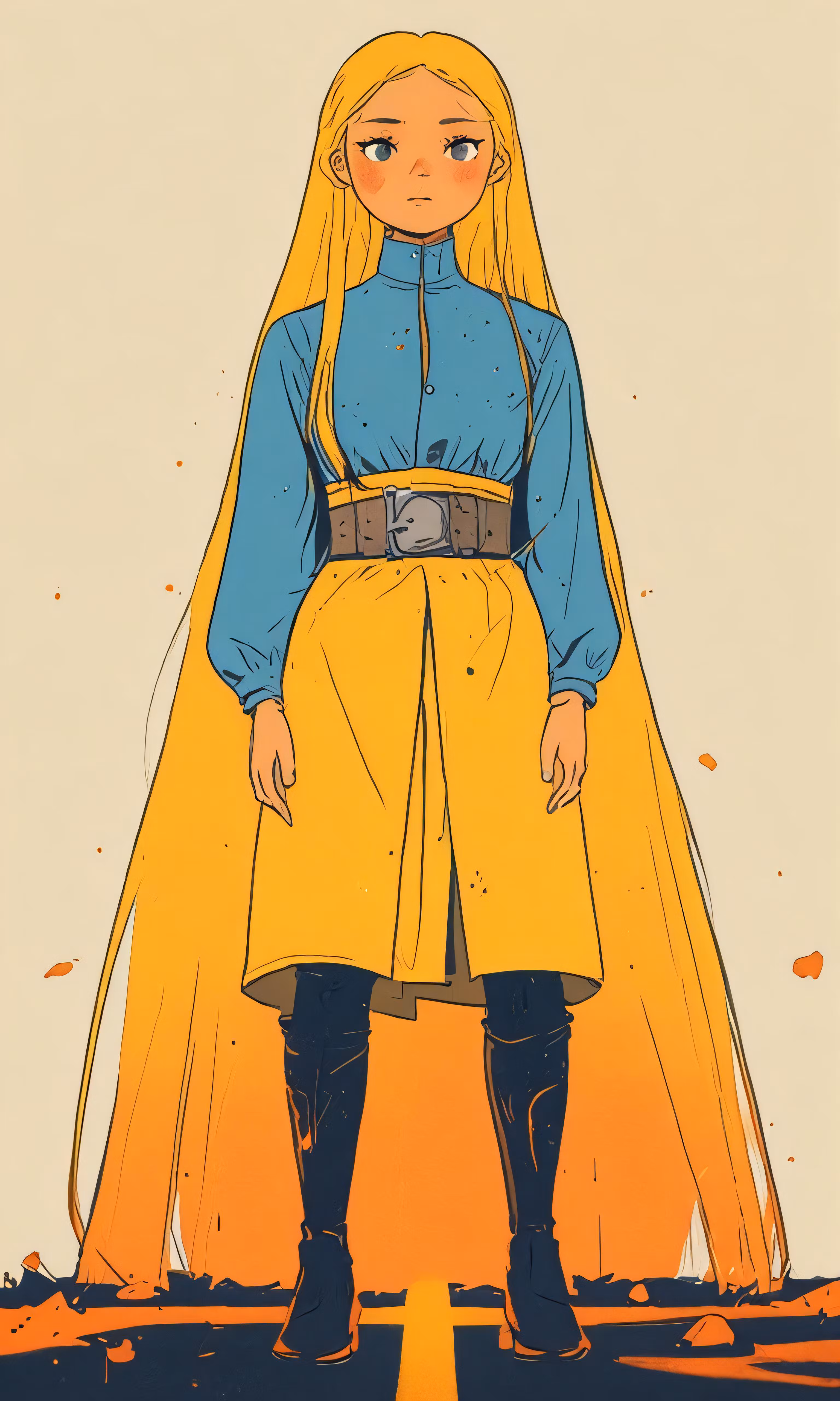 High resolution picture, free to use, a cartoon image of a woman in yellow dress with blue top