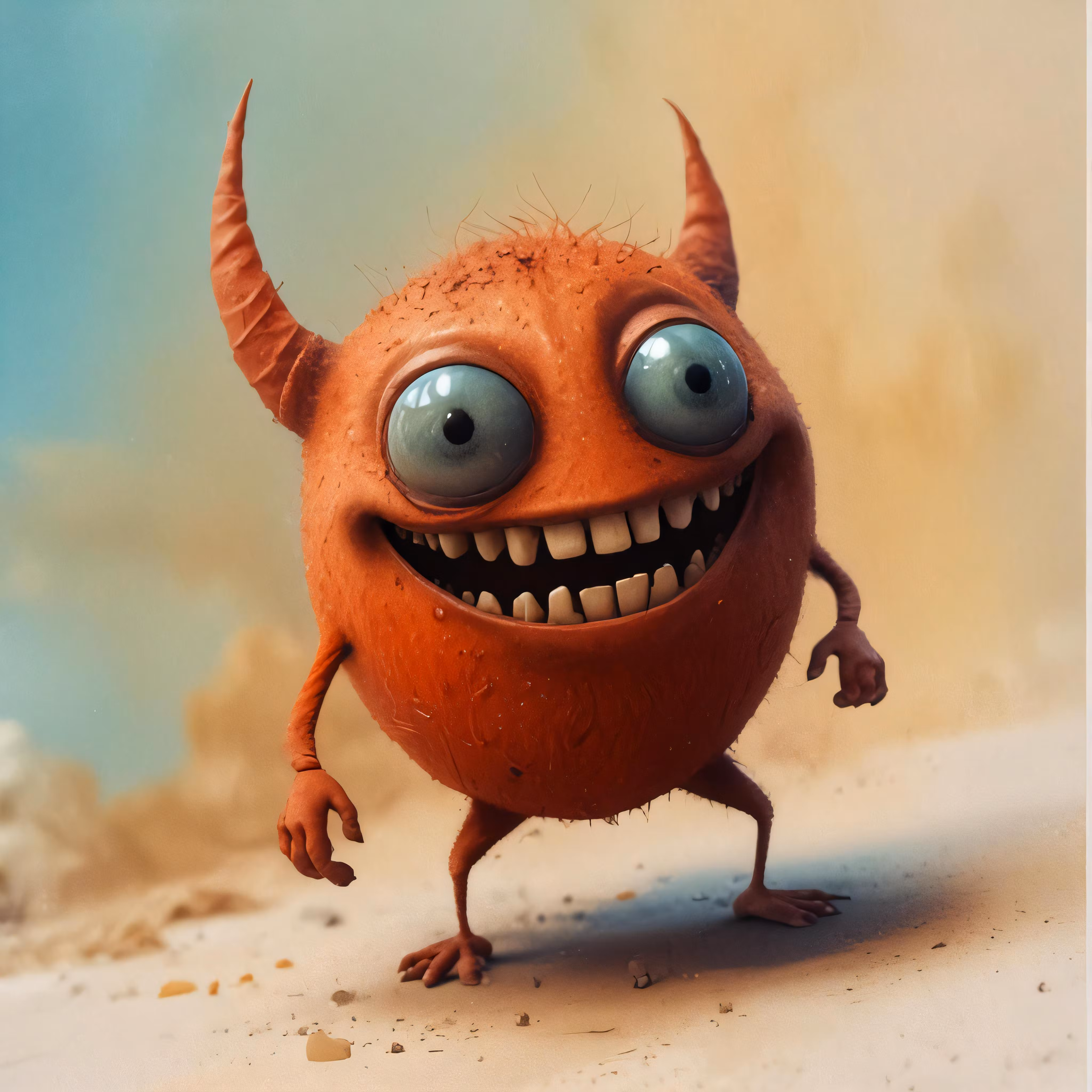 High resolution picture, free to use, a cartoon monster with huge blue eyes and long horns