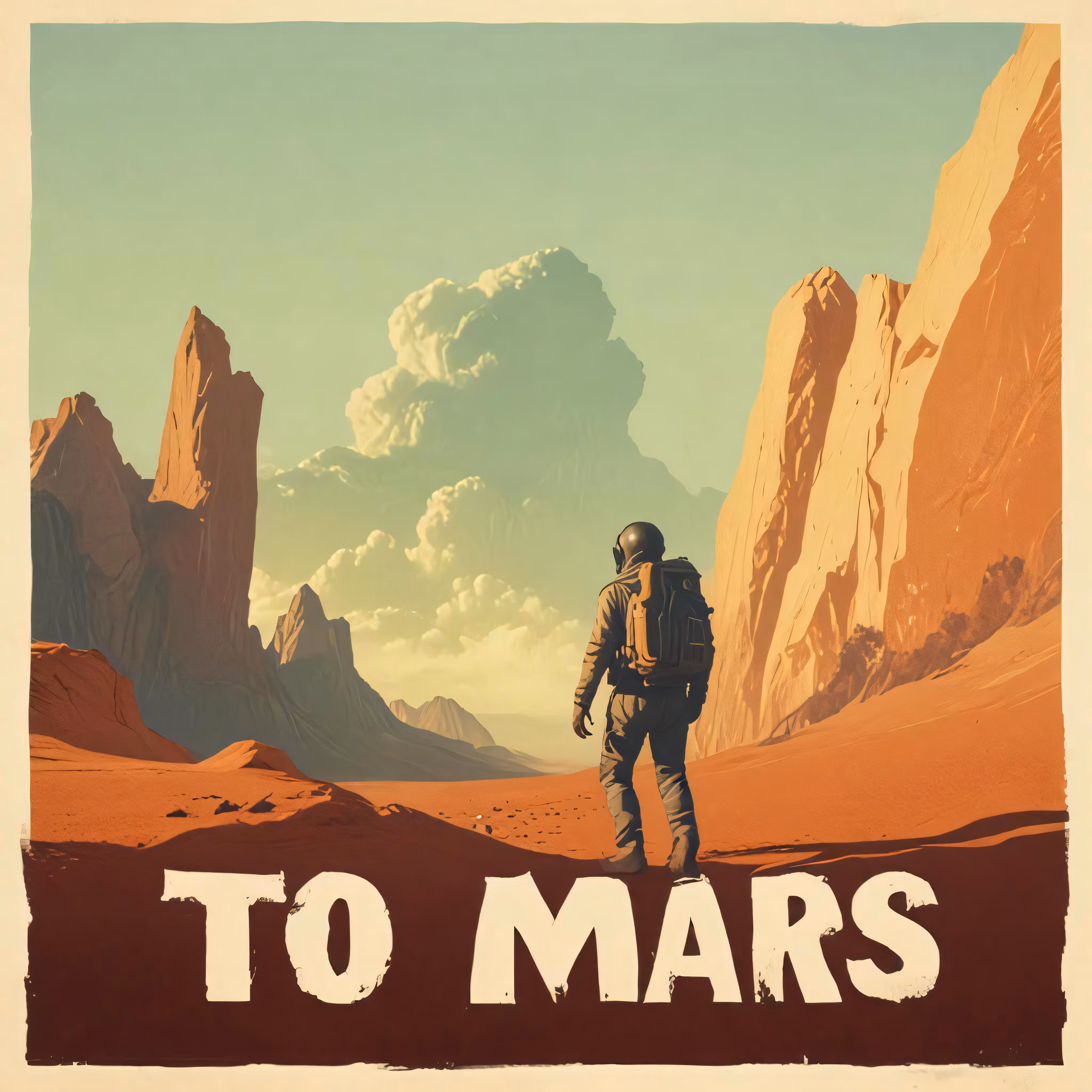 High resolution picture, free to use, a cartoon of a man in space and mountains