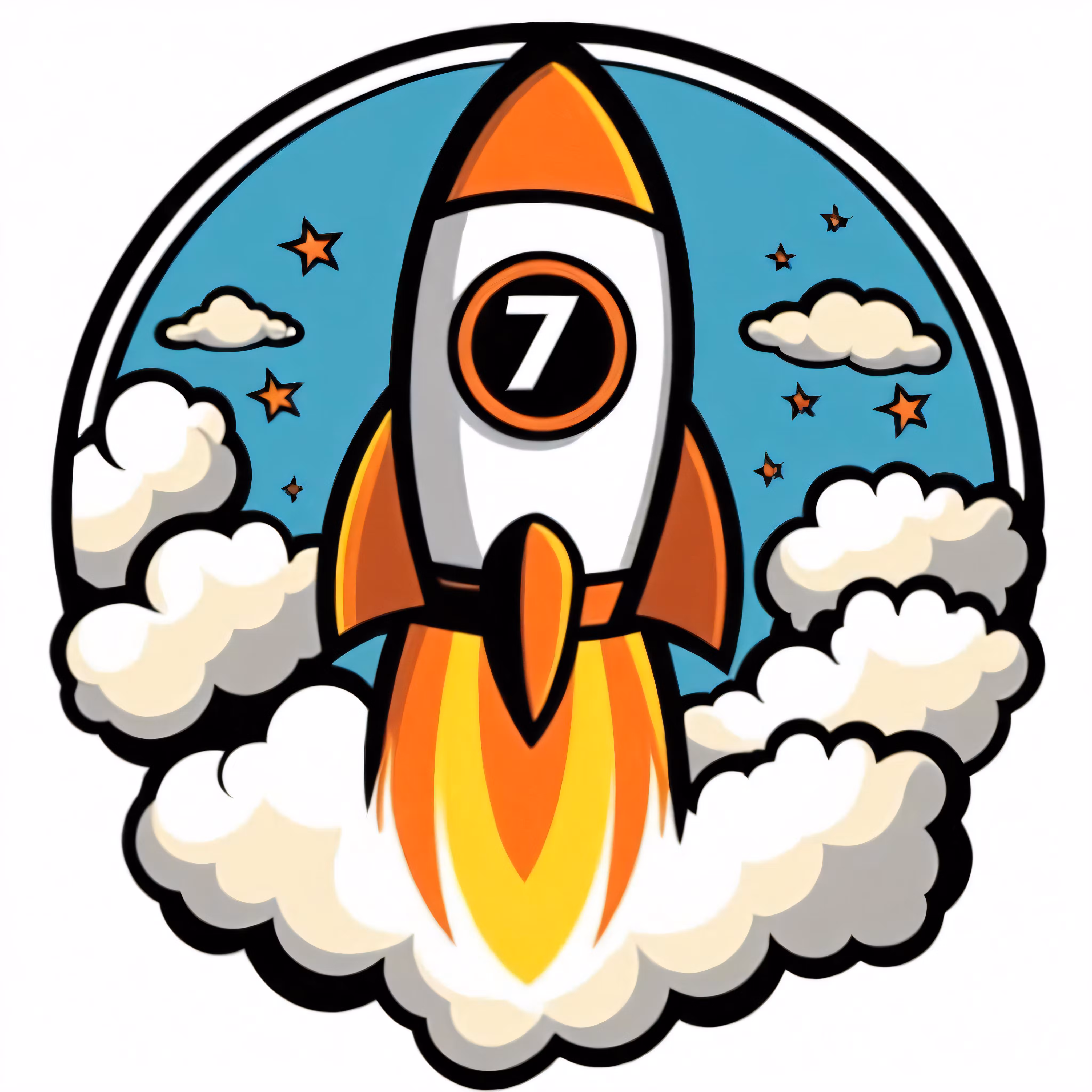 High resolution picture, free to use, a cartoon rocket ship flies through the sky