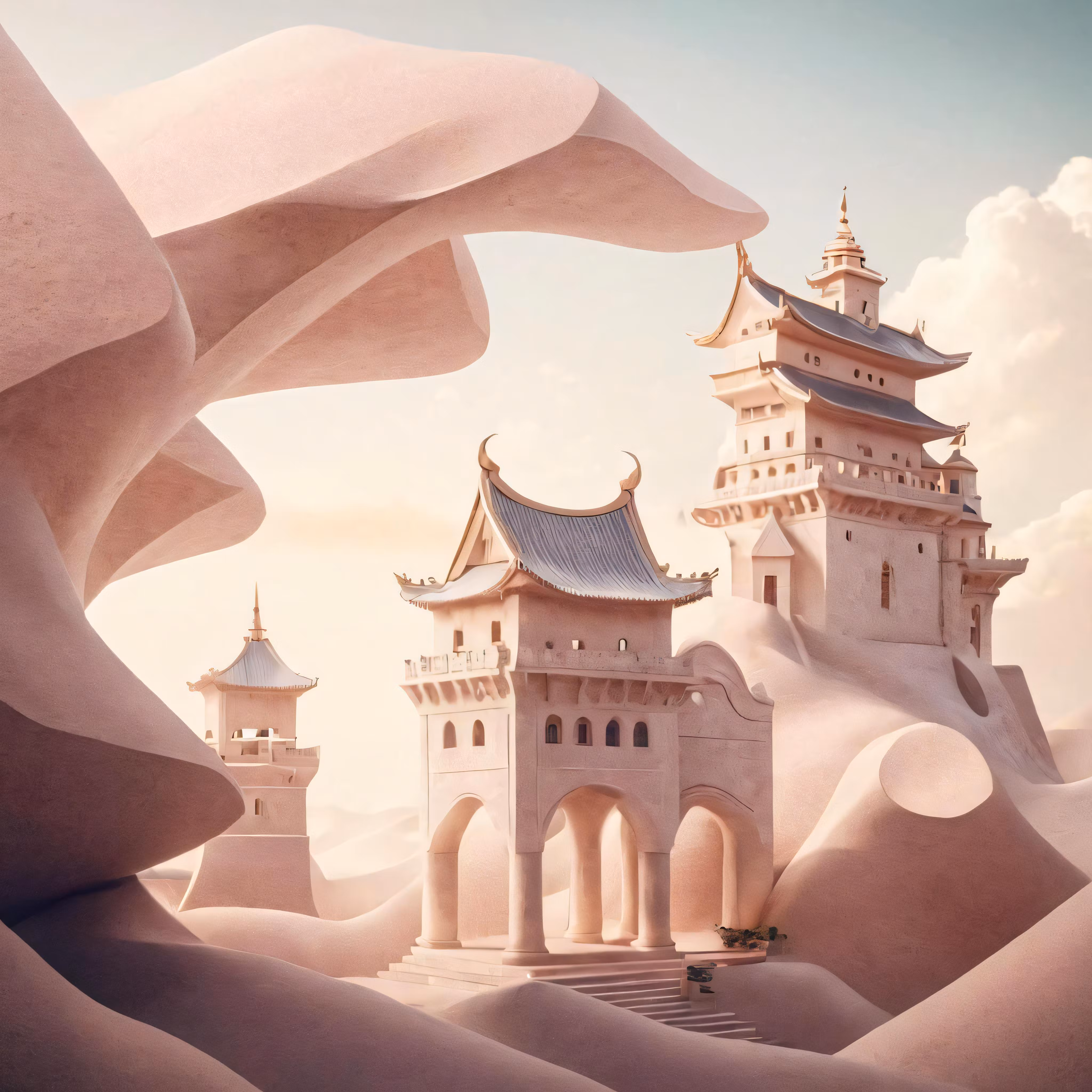 High resolution picture, free to use, a castle surrounded by sand dunes and mountains