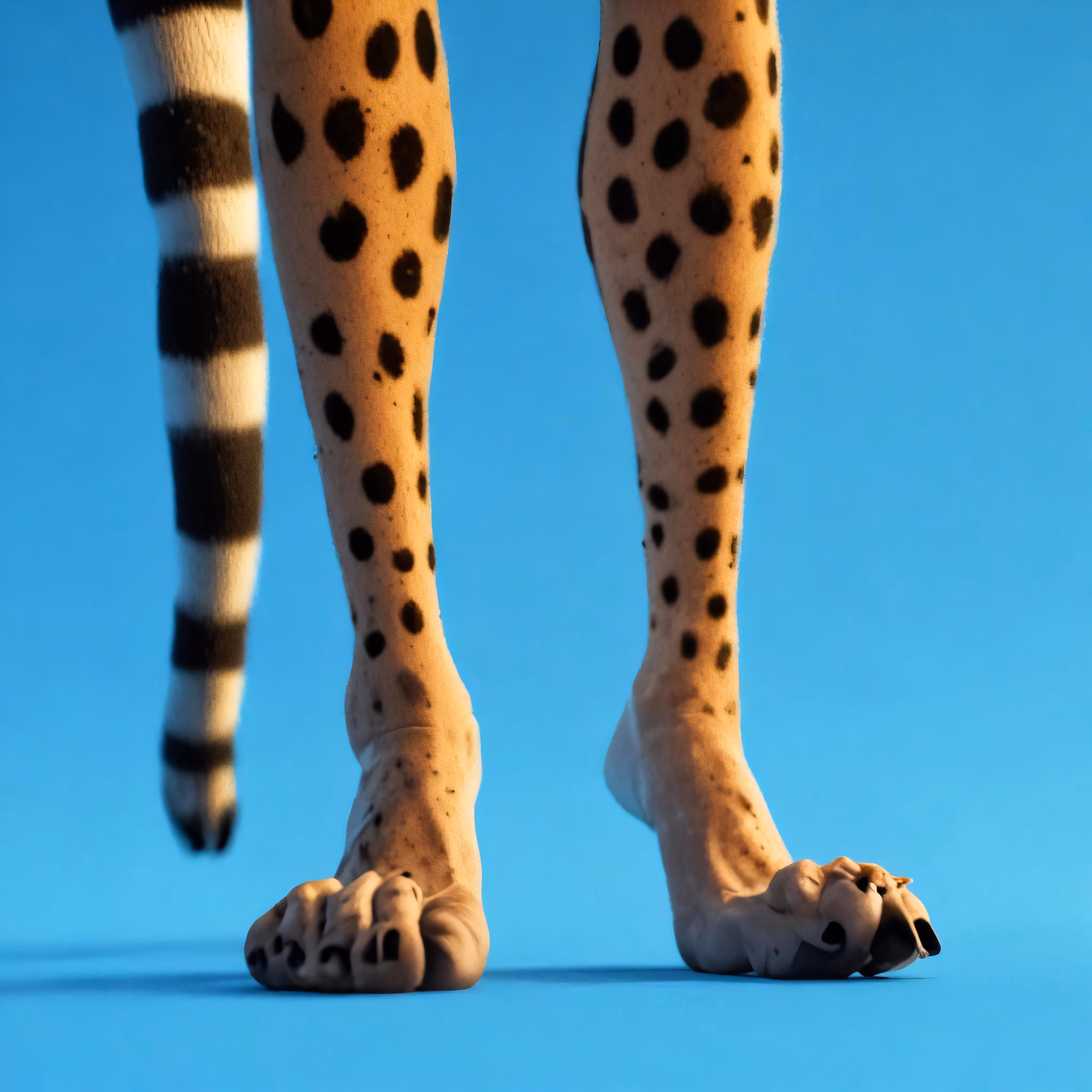 High resolution picture, free to use, a cat   like foot on top of a leopard   print leg
