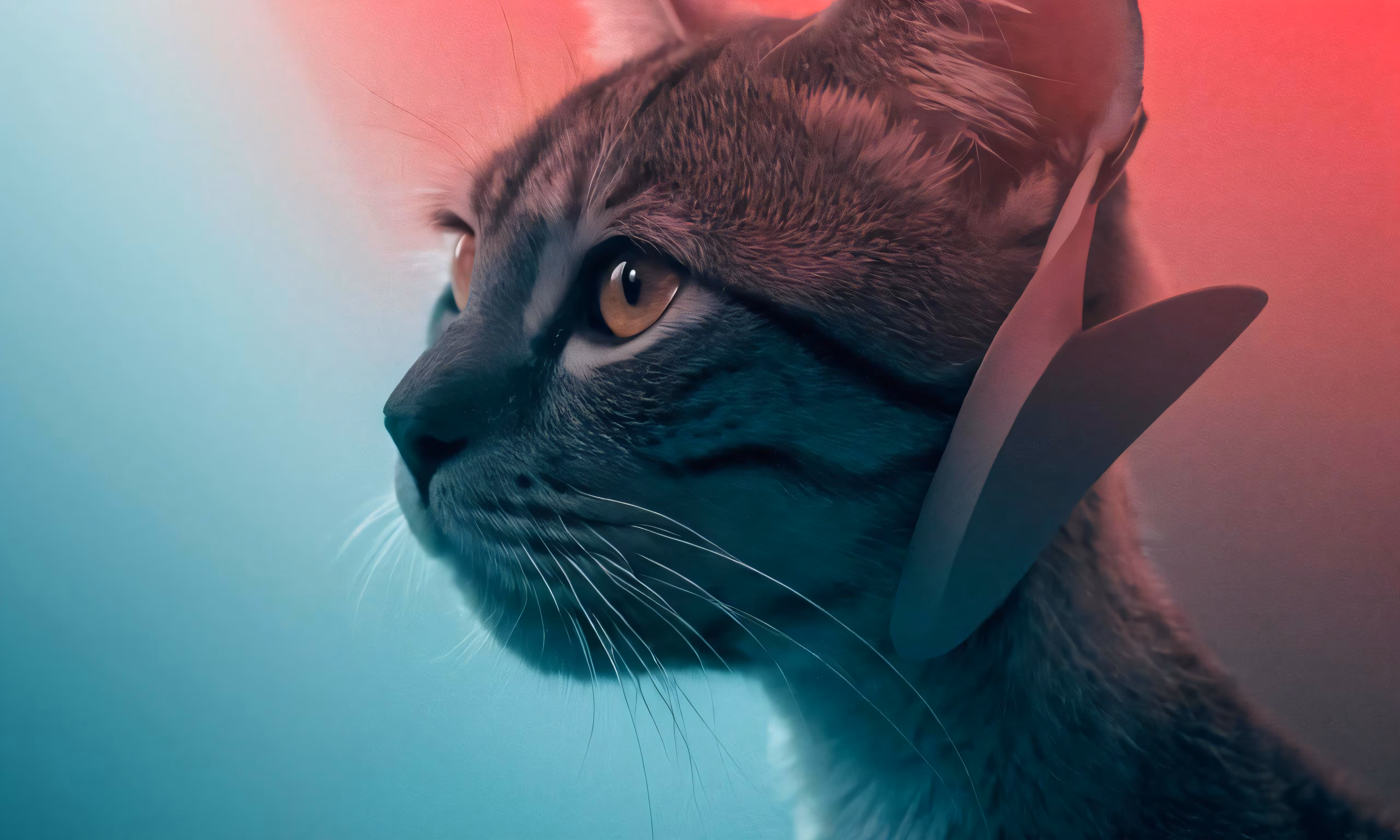 High resolution picture, free to use, a cat has an electronic head massage made to look like a human