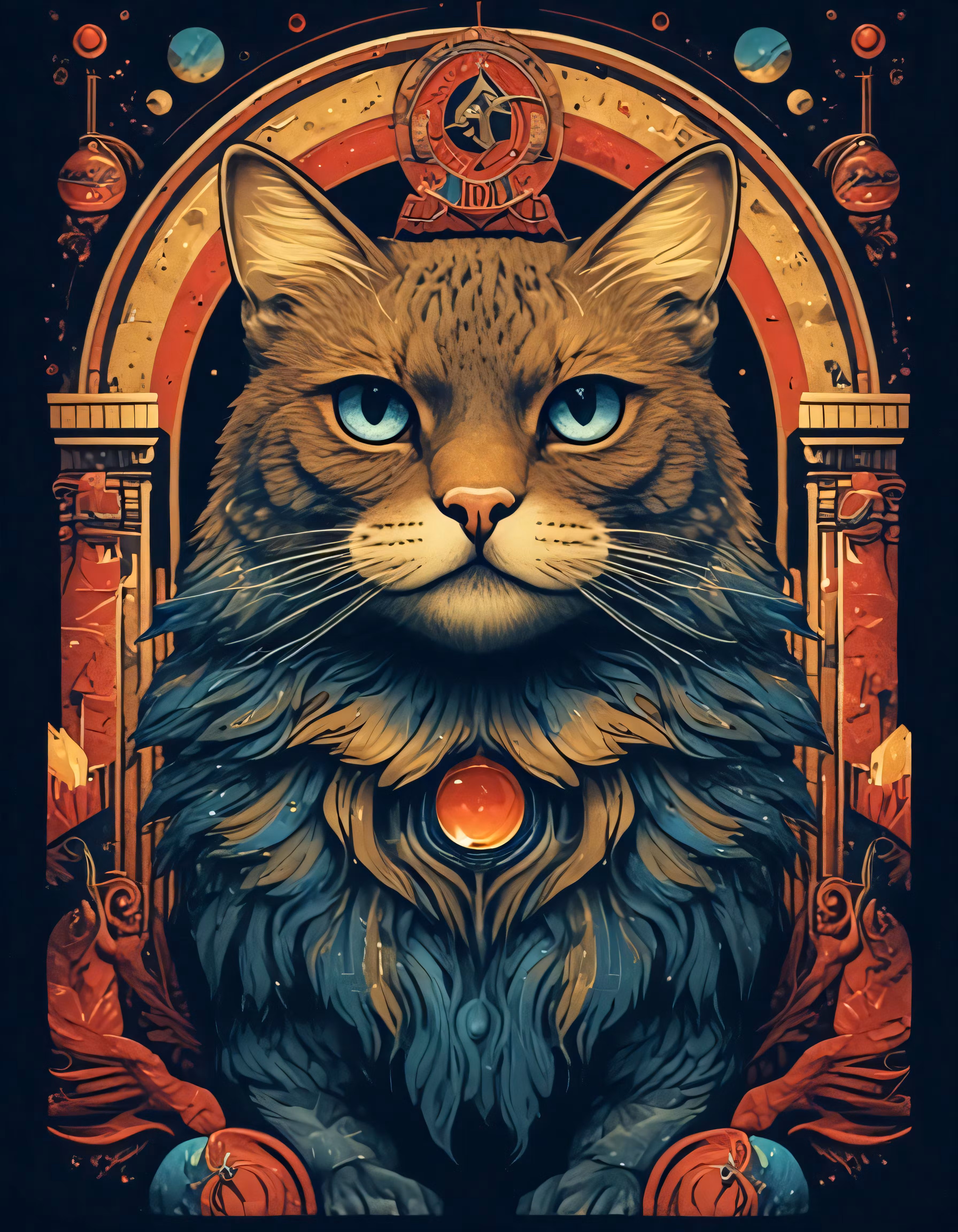 High resolution picture, free to use, a cat is in a stylized portrait with an ornate border