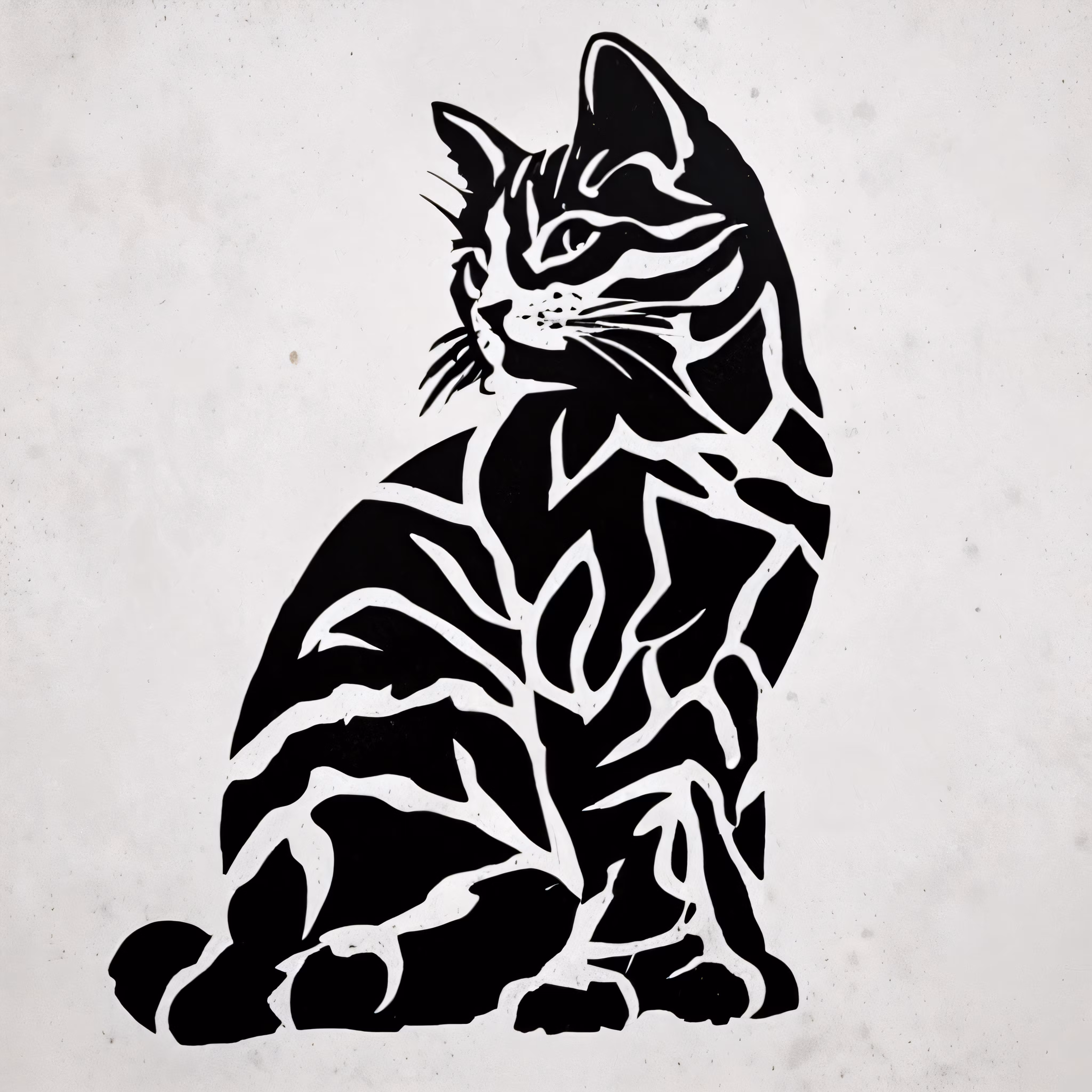 High resolution picture, free to use, a cat silhouette painted on the wall in black and white