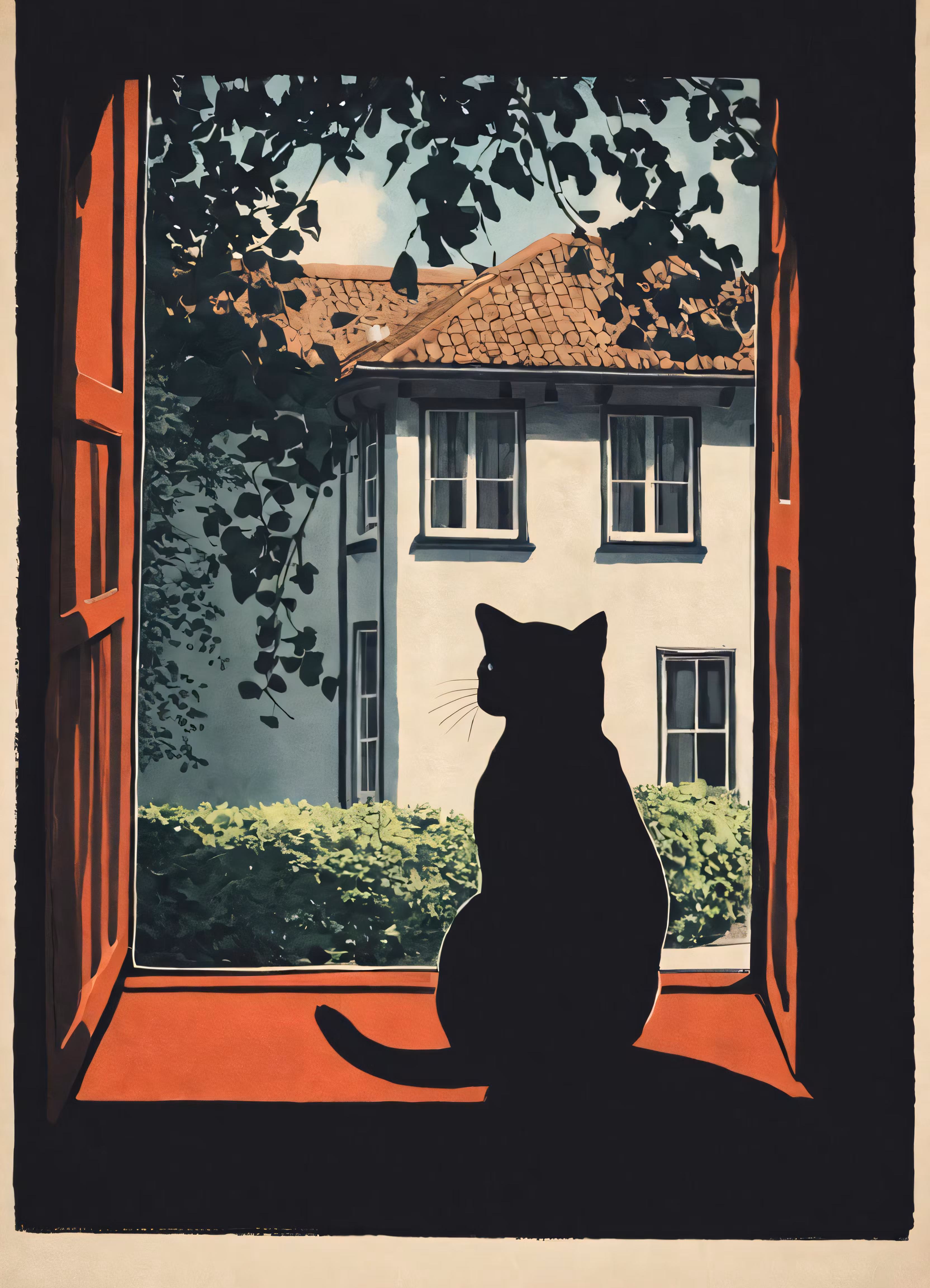 High resolution picture, free to use, a cat sitting inside an open door of a house