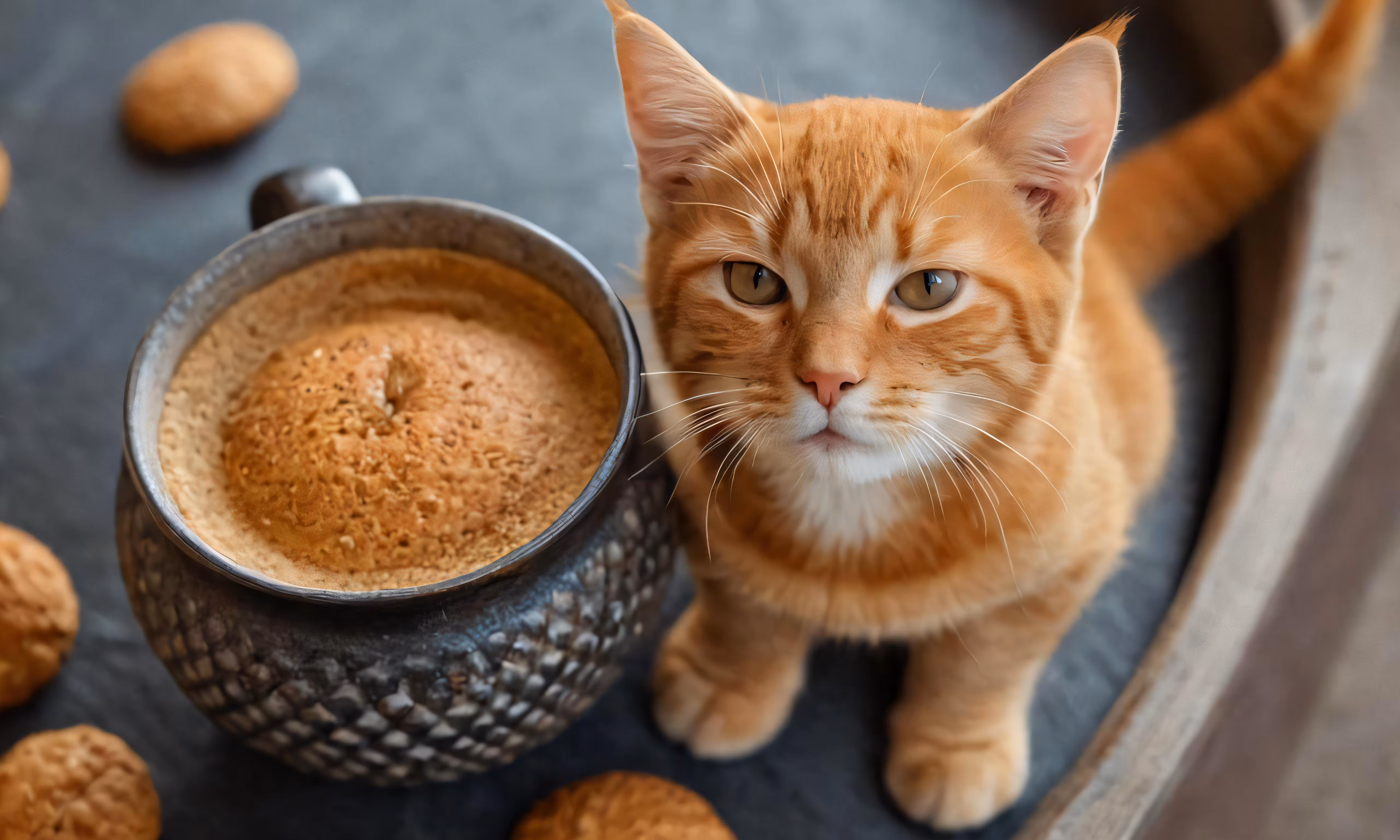 High resolution picture, free to use, a cat sitting next to a cup of coffee