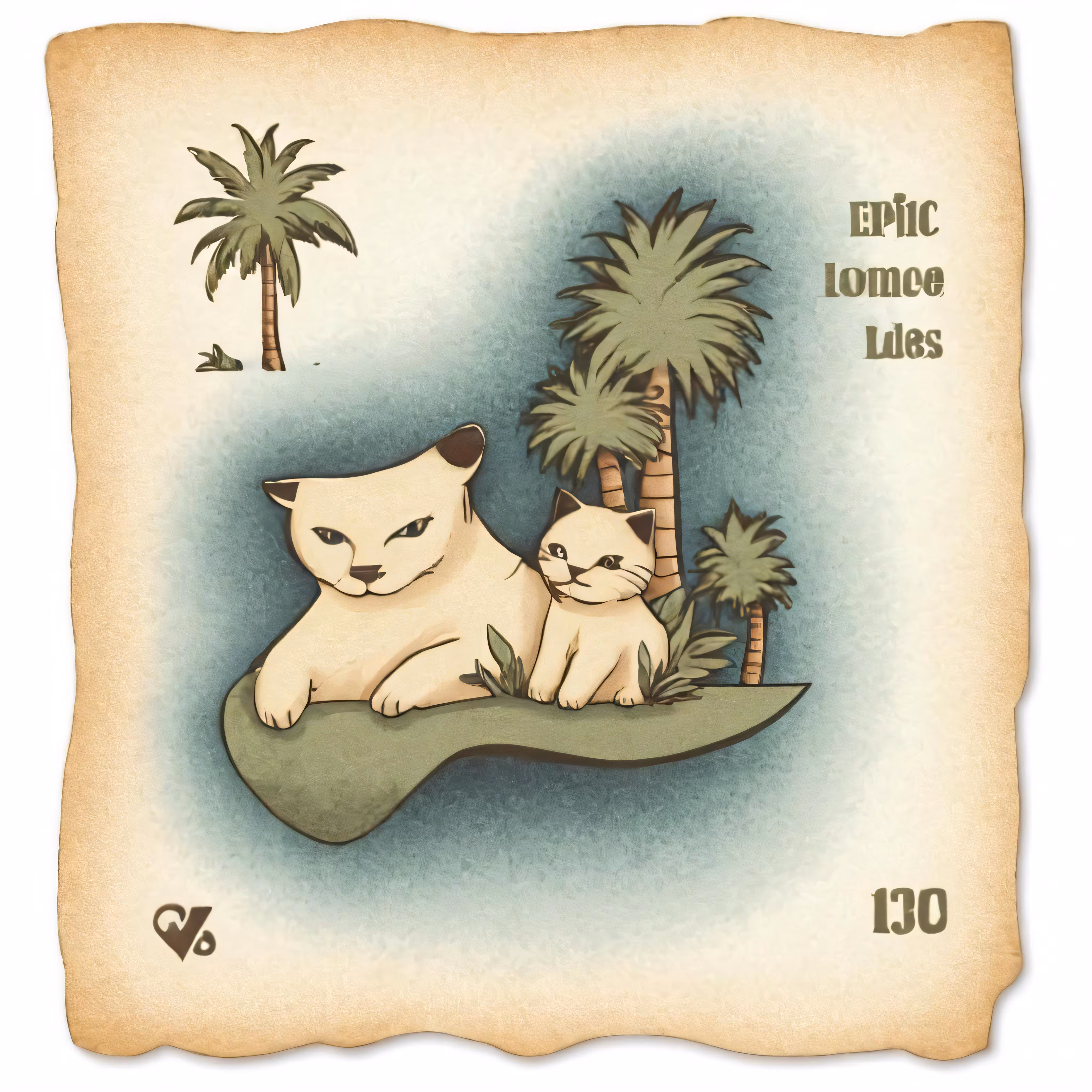 High resolution picture, free to use, a cat sitting on top of another cat in front of palm trees