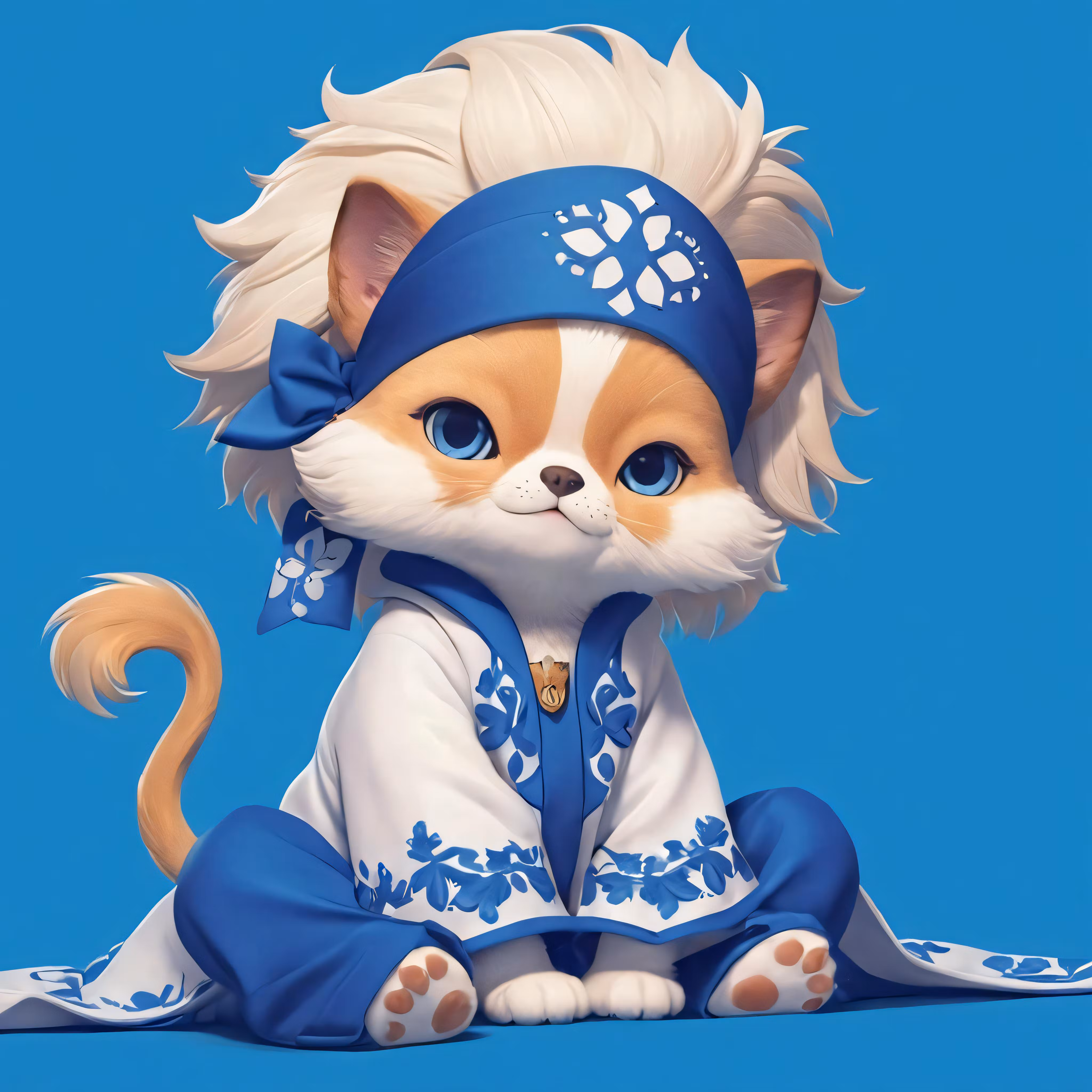 High resolution picture, free to use, a cat statue sitting on top of a blue background