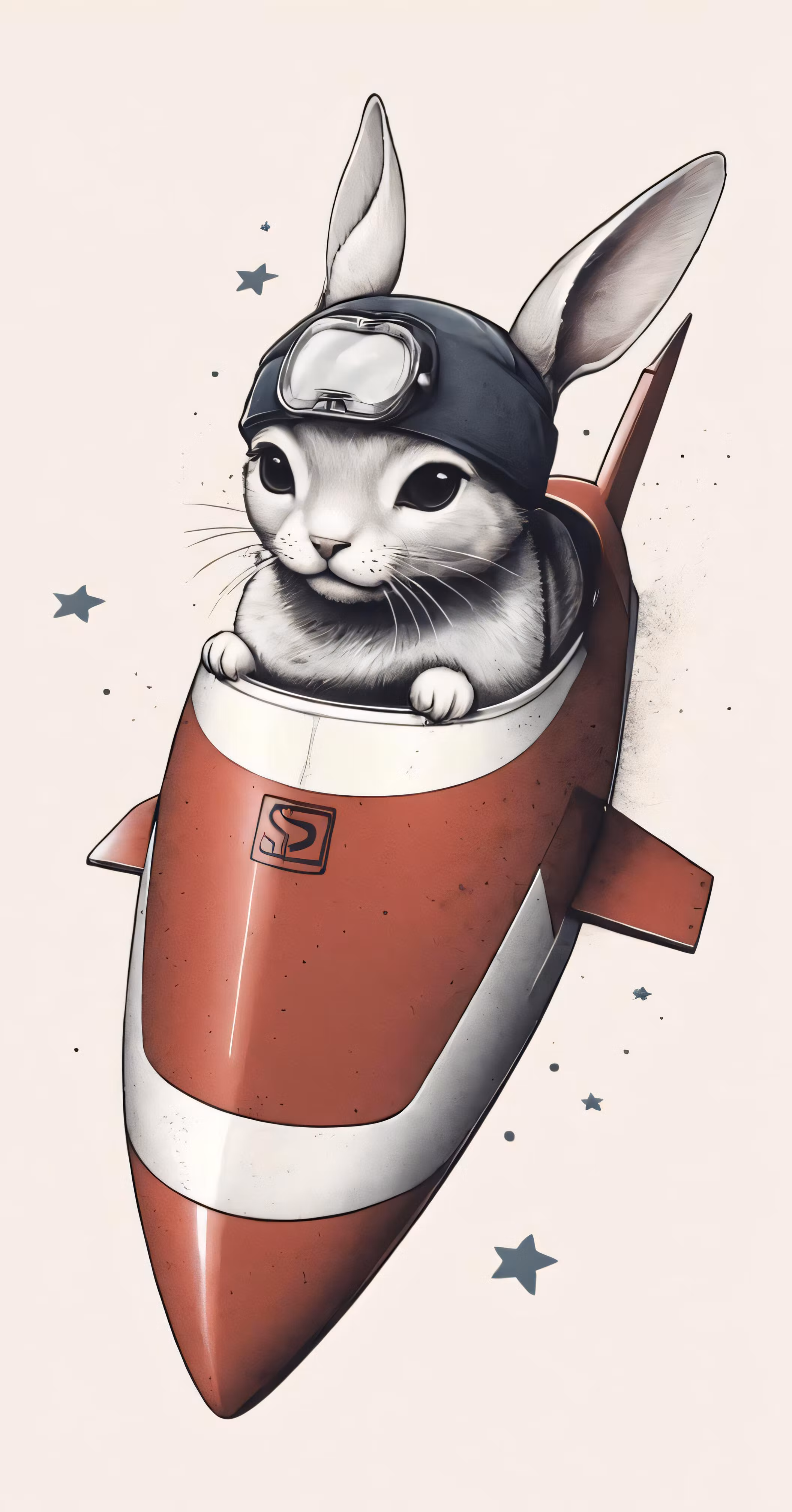 High resolution picture, free to use, a cat that is sitting on a rocket with stars