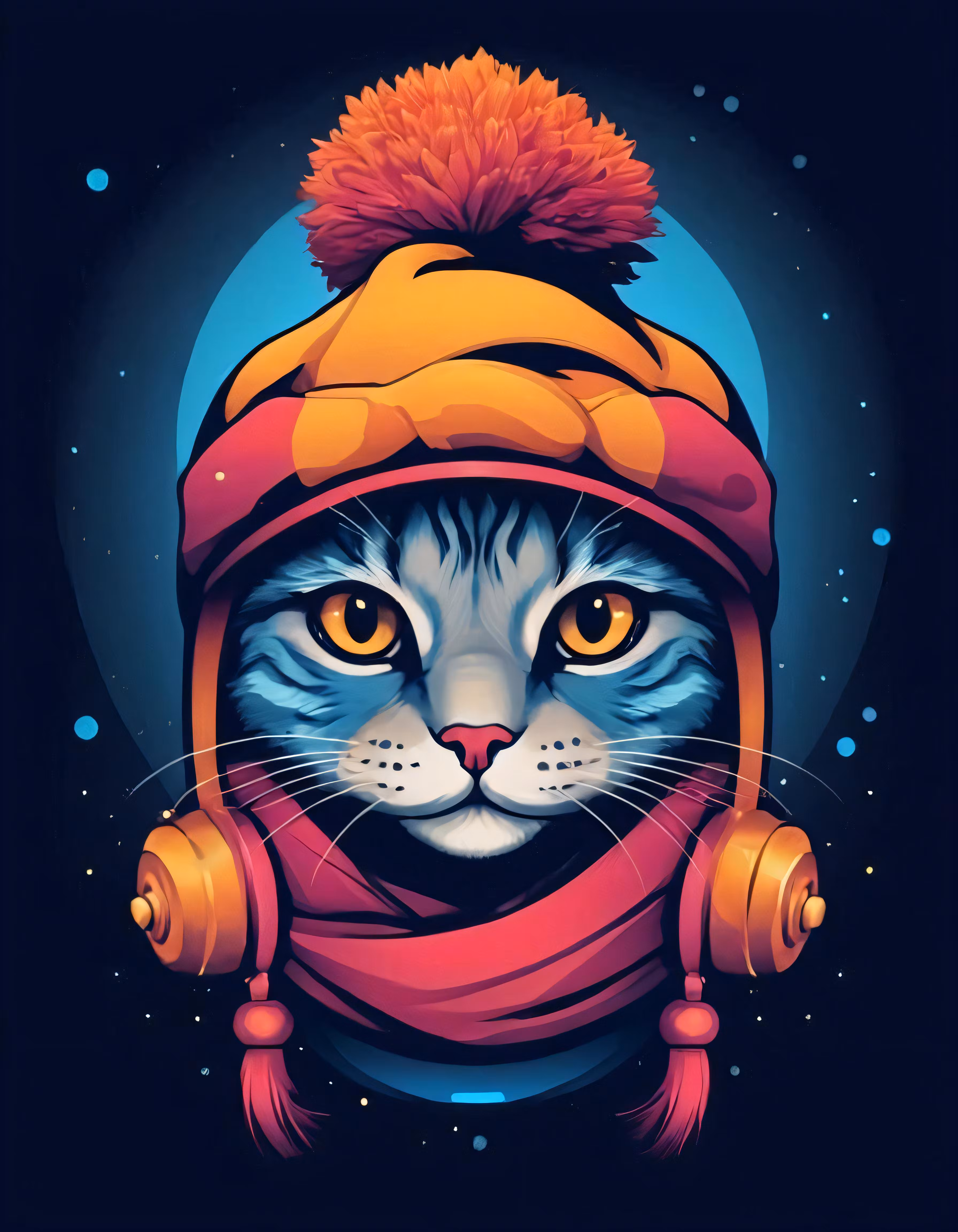 High resolution picture, free to use, a cat wearing a hat and a scarf