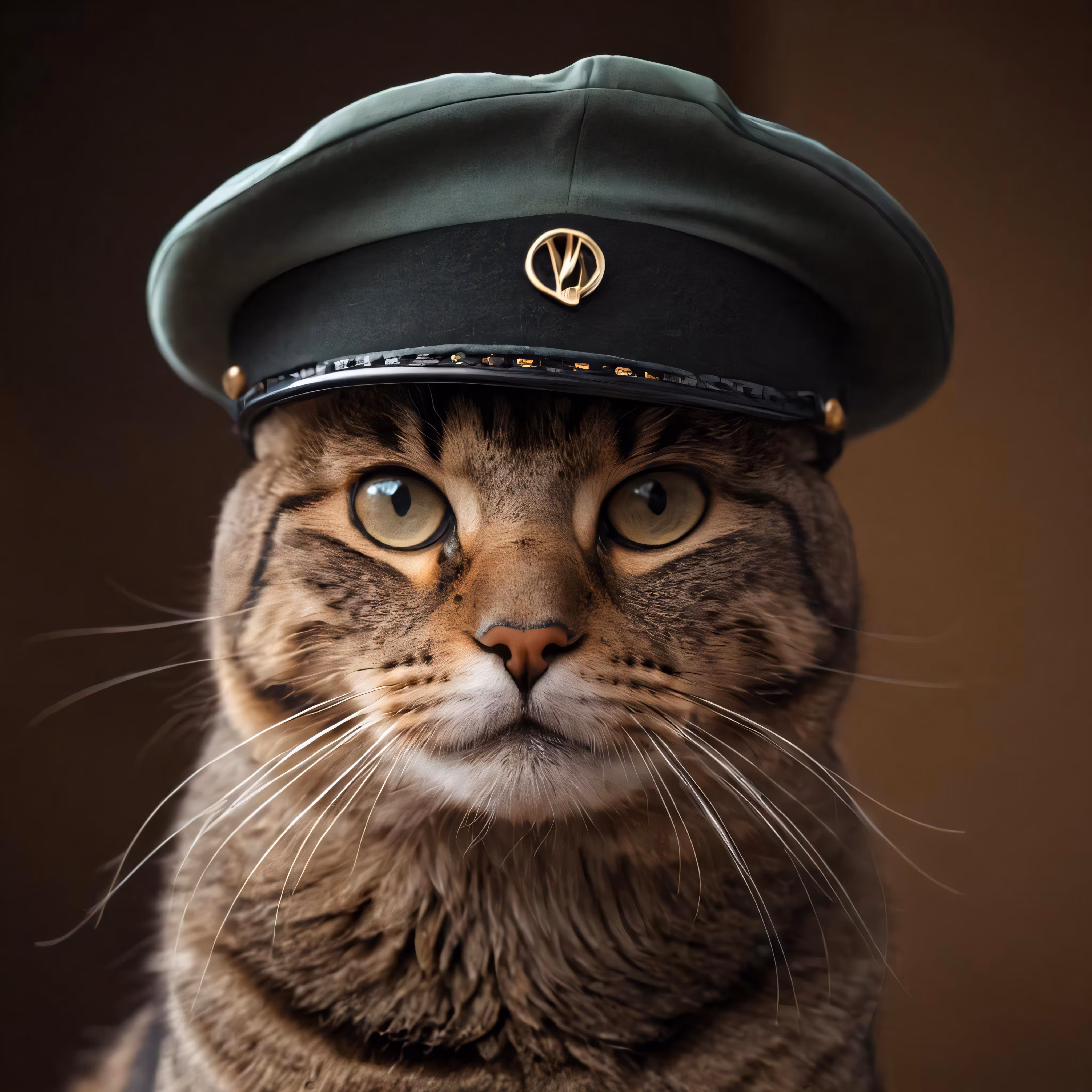 High resolution picture, free to use, a cat wearing a hat looking directly at the camera