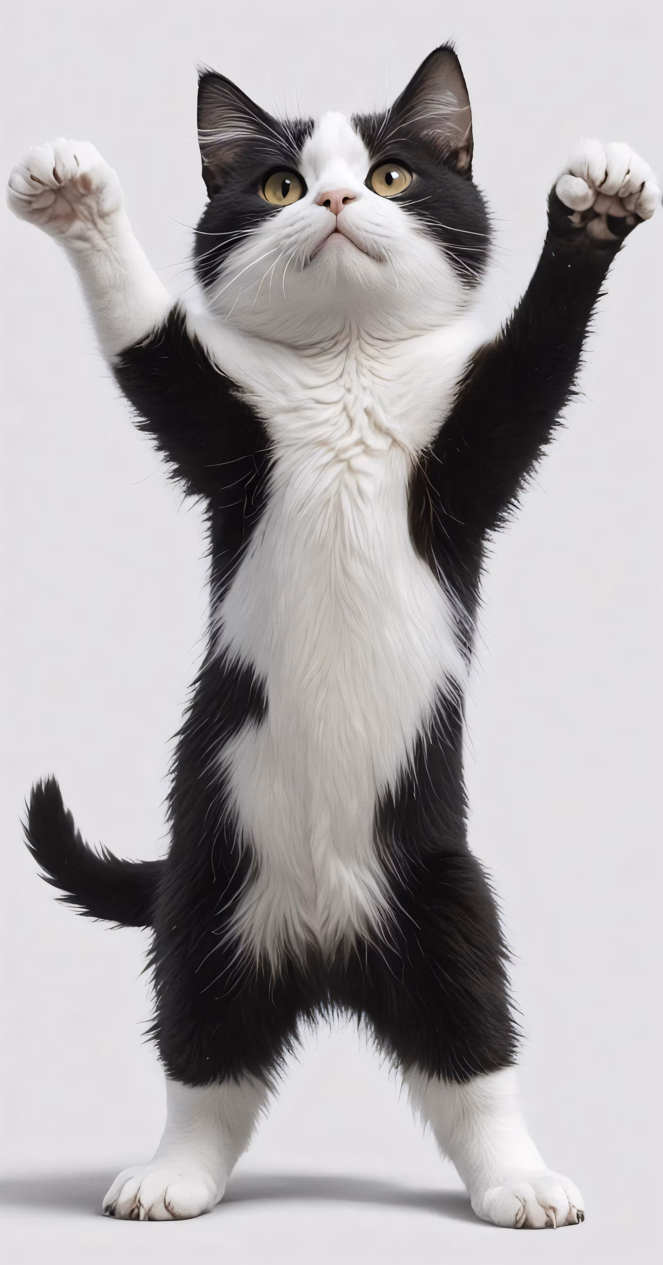 High resolution picture, free to use, a cat with his paws up with its arms in the air