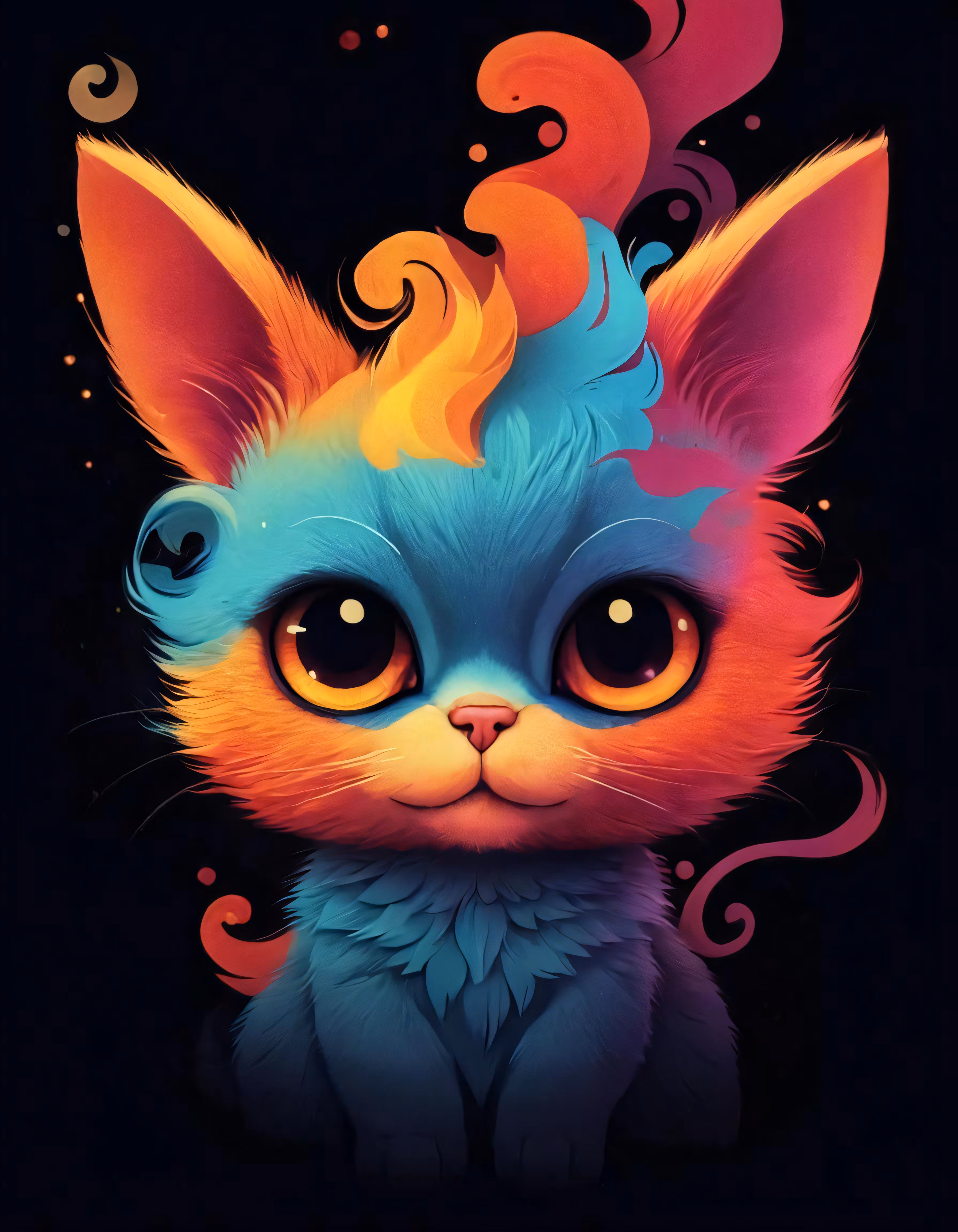 High resolution picture, free to use, a cat with some very colorful hair on its head