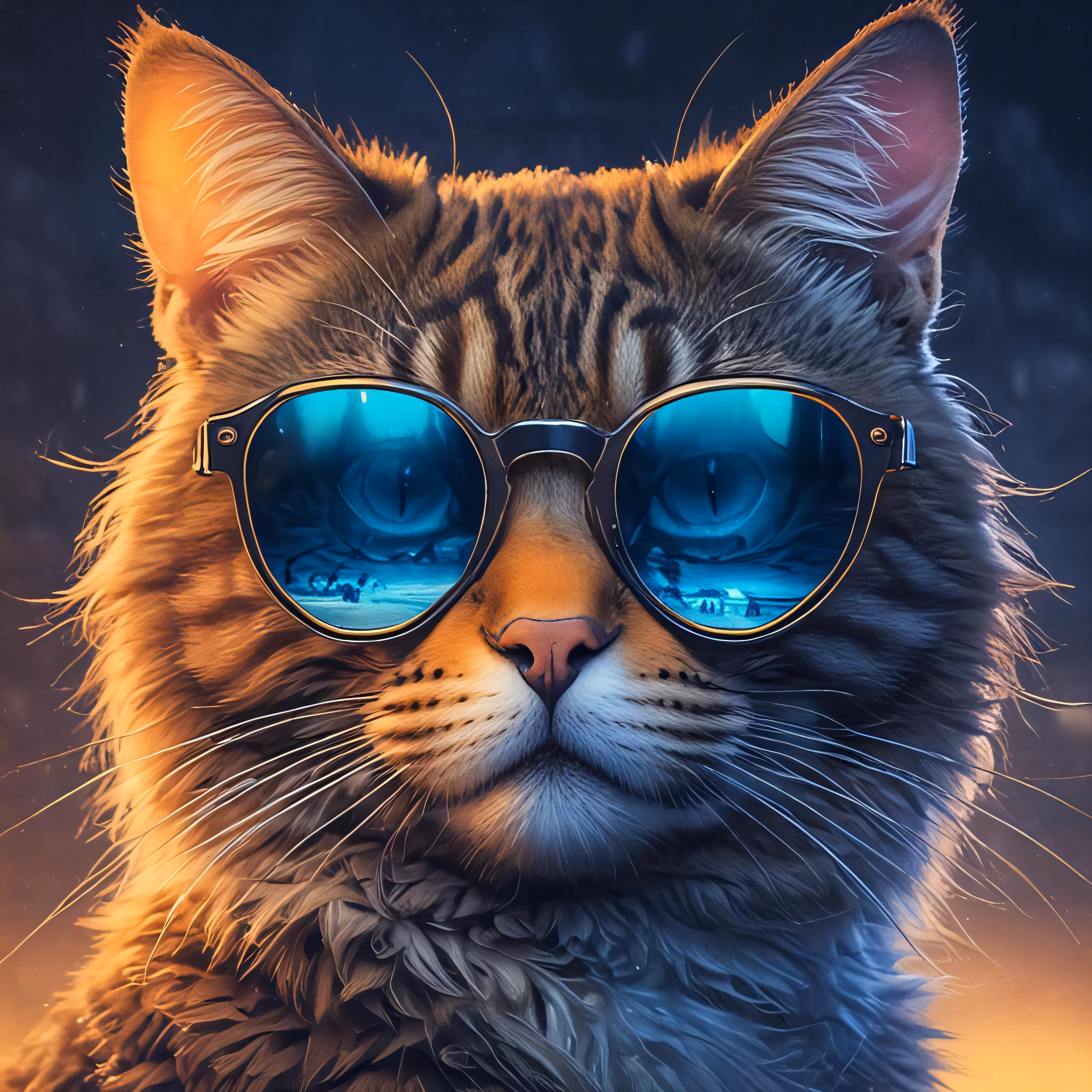 High resolution picture, free to use, a cat with sunglasses and stars on his head