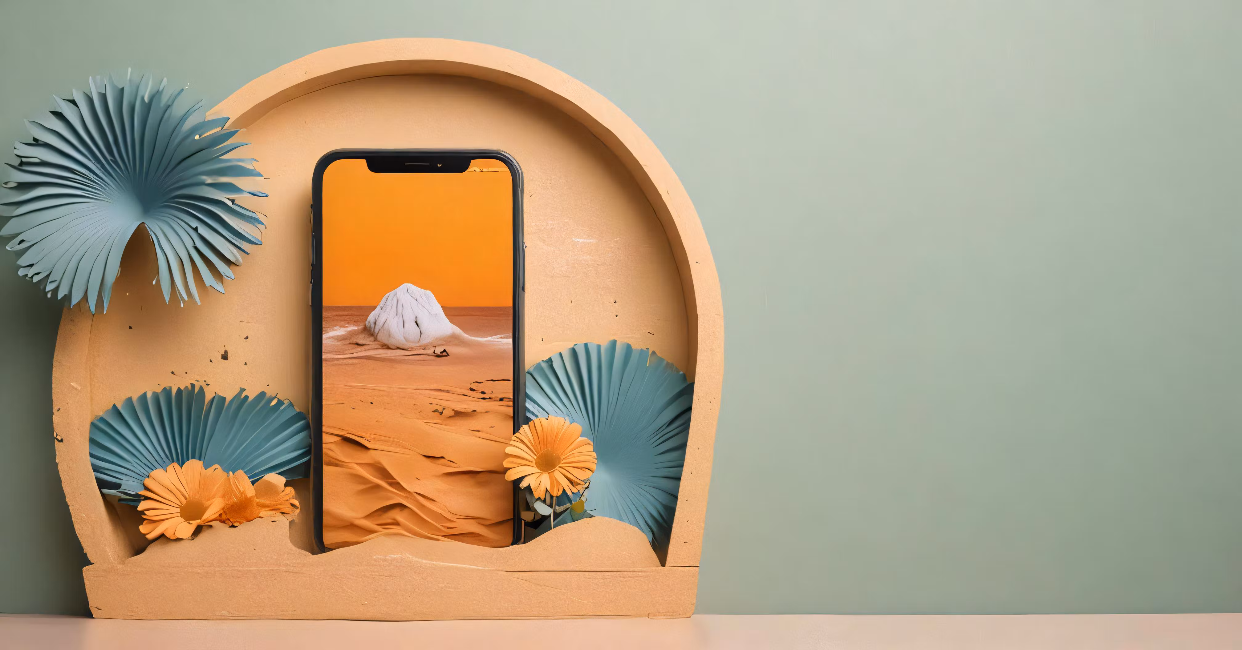 High resolution picture, free to use, a cell phone is placed on a unique piece of artwork
