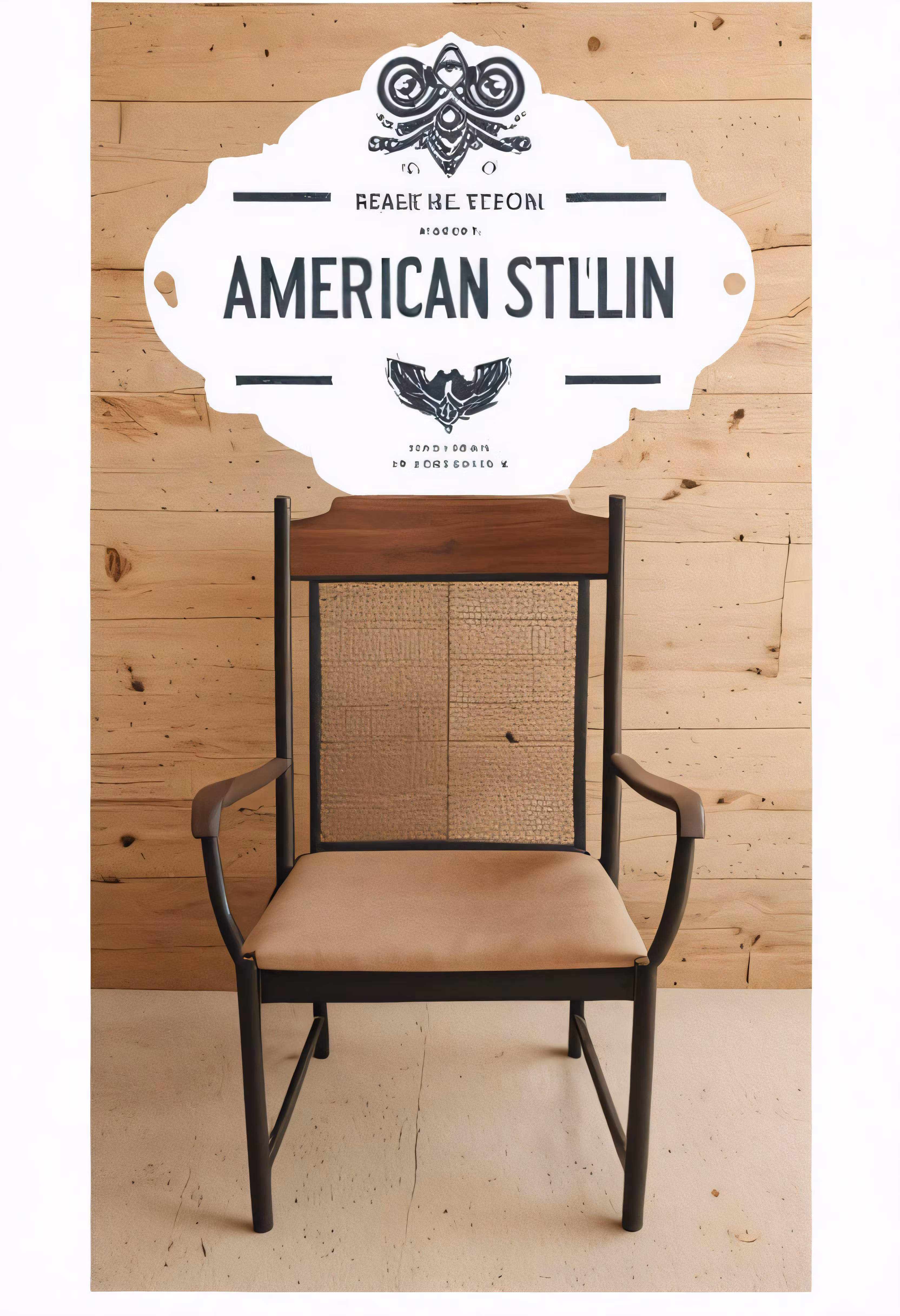 High resolution picture, free to use, a chair against a wooden wall next to a sign