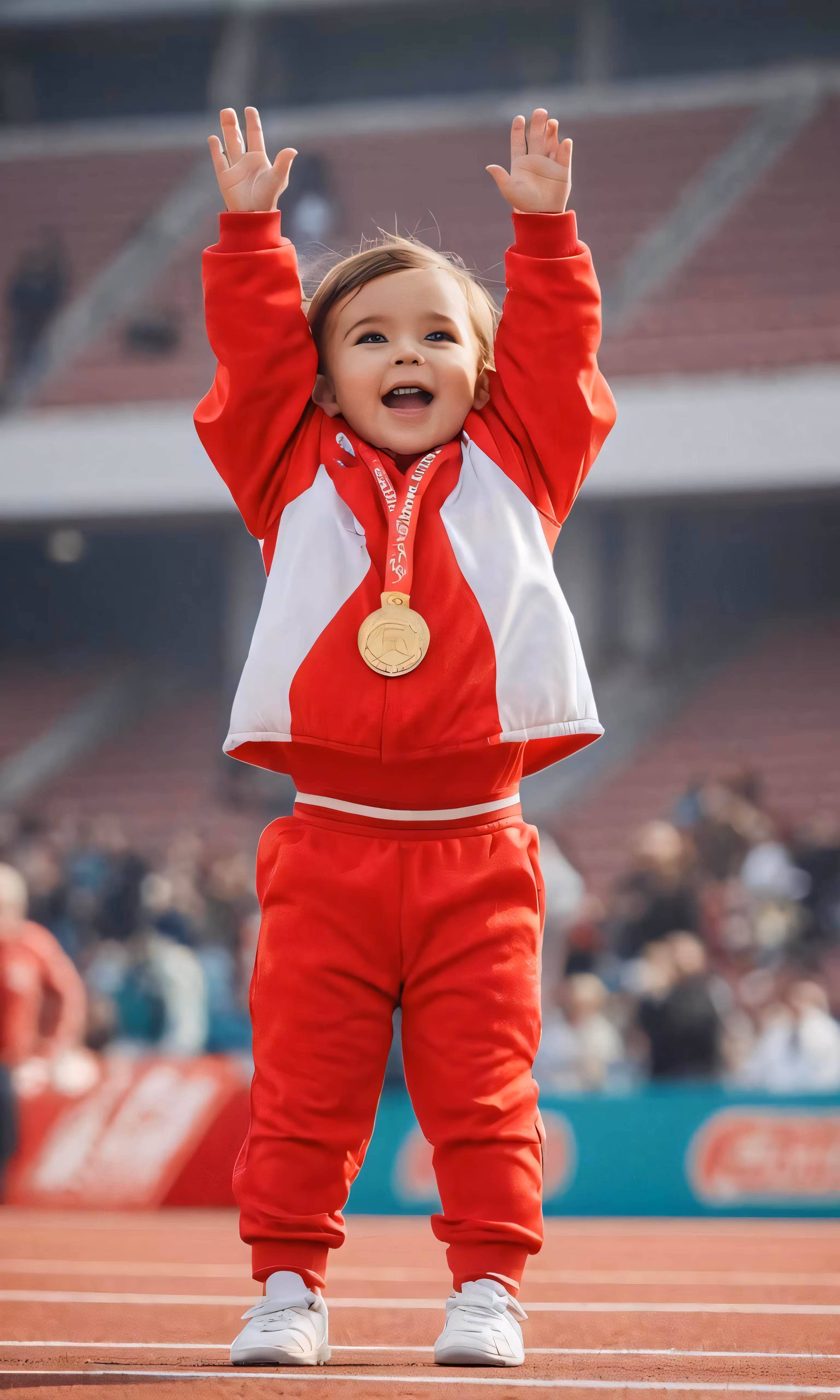 High resolution picture, free to use, a child is in the middle of winning a gold medal