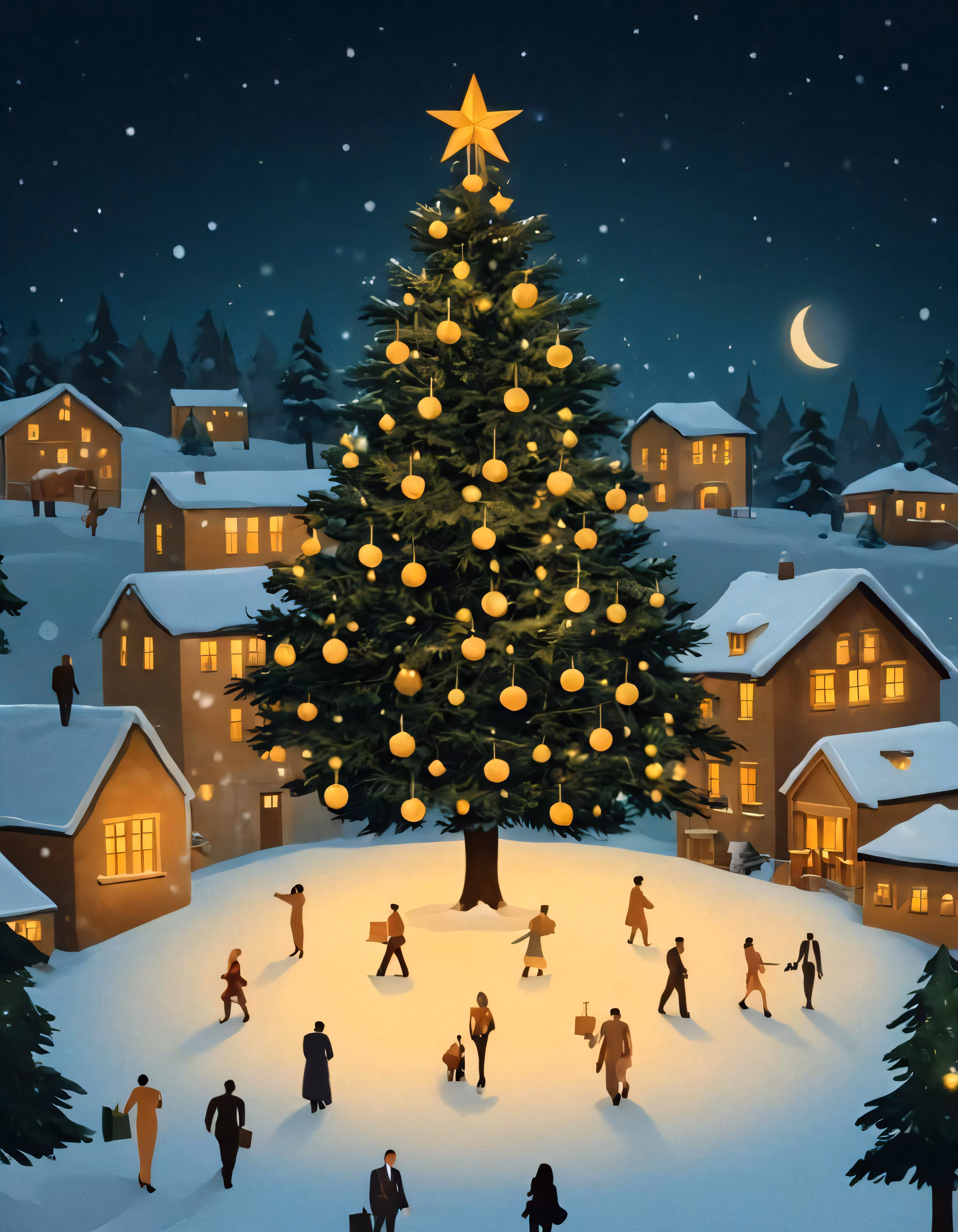 High resolution picture, free to use, a christmas tree with people walking around in front of it