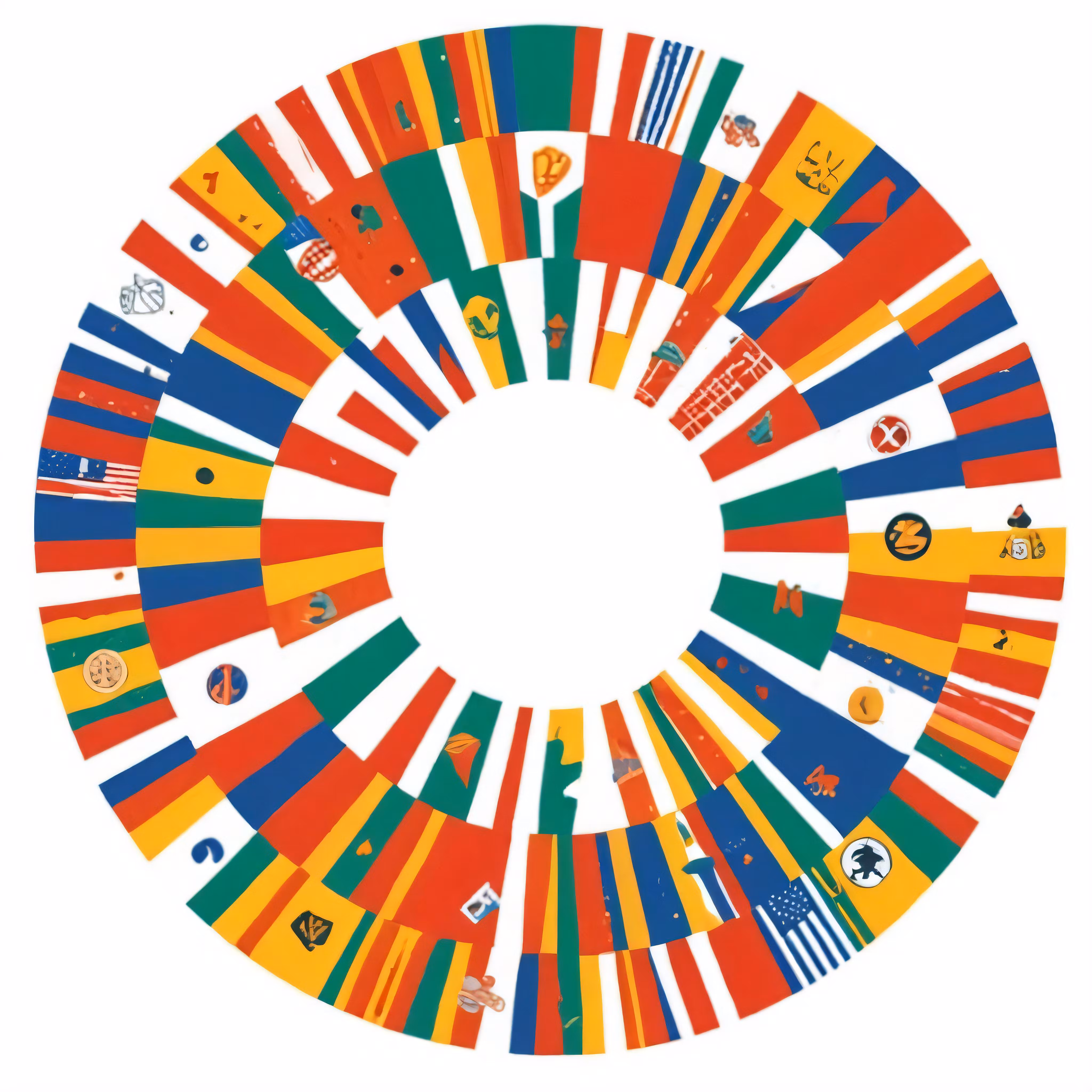 High resolution picture, free to use, a circle of many different flags is shown