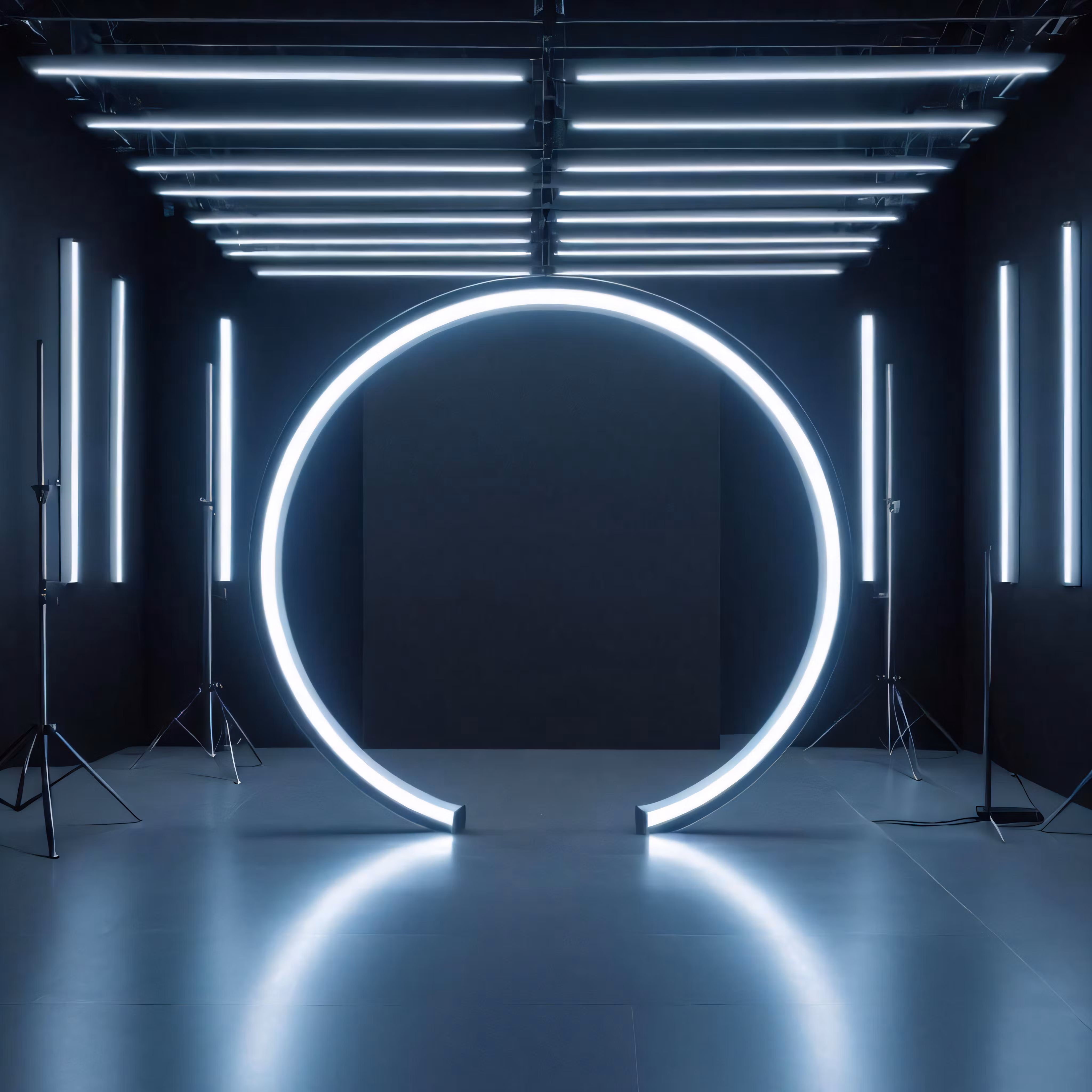 High resolution picture, free to use, a circular tunnel is shown with neon lights