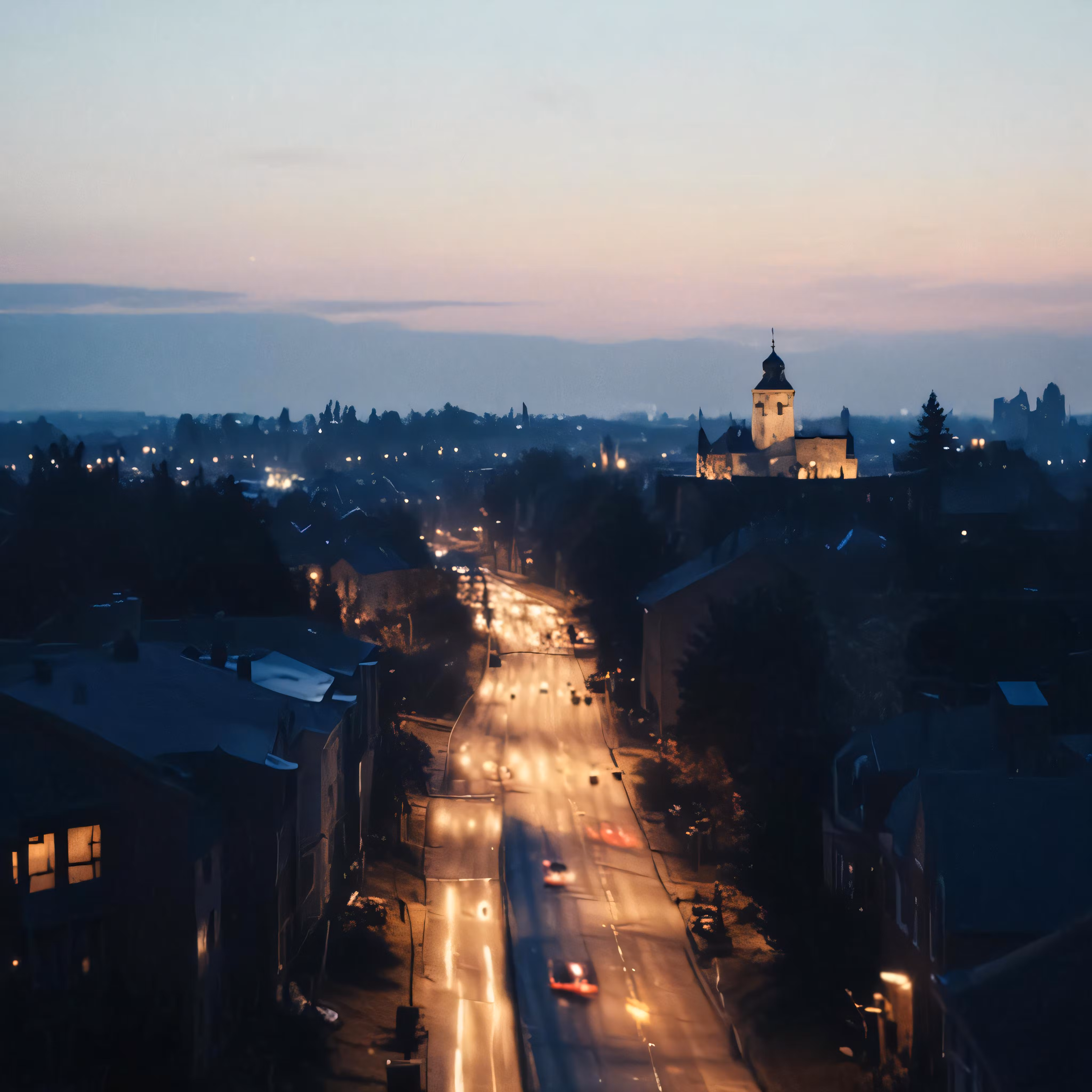 High resolution picture, free to use, a cityscape has street lights in the foreground