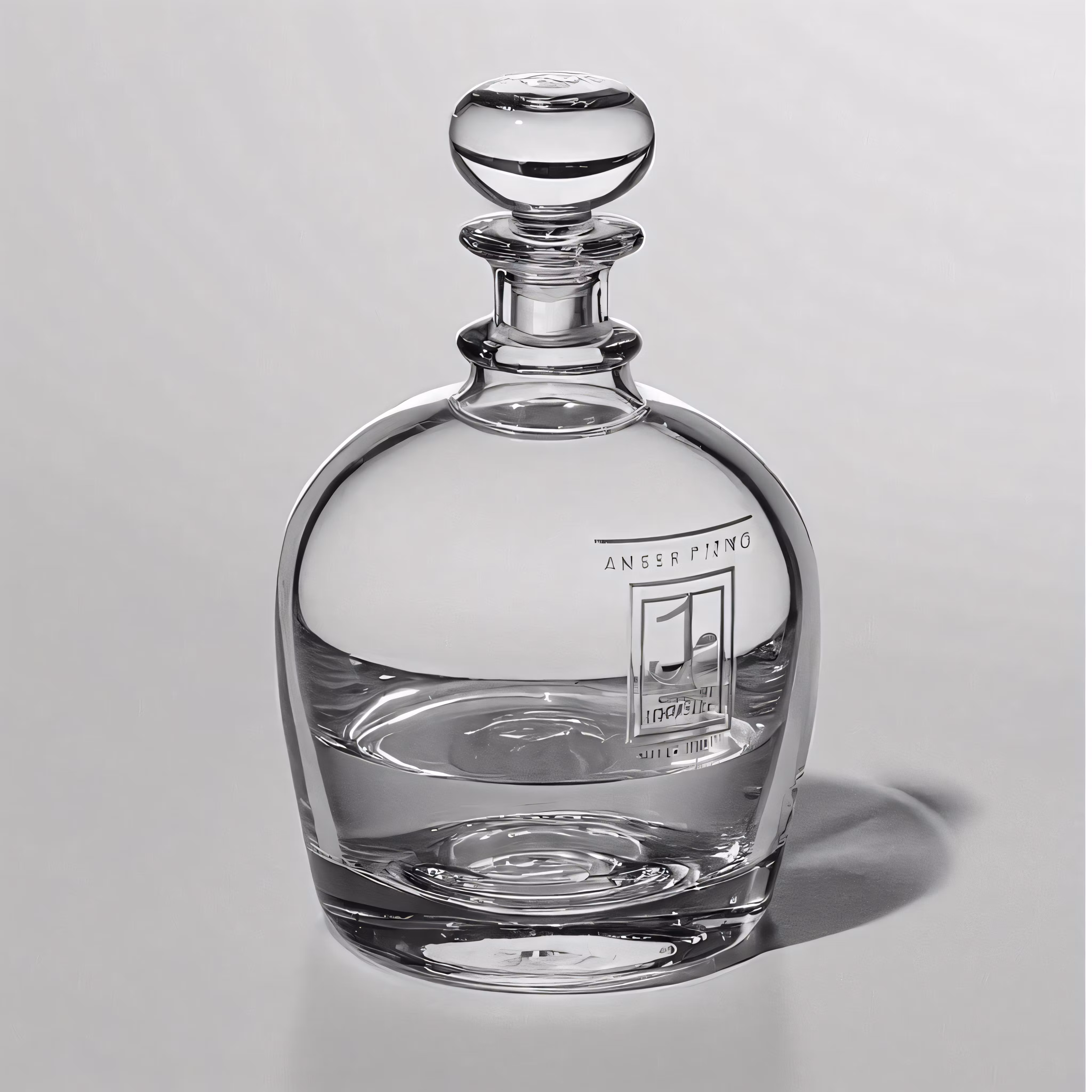 High resolution picture, free to use, a clear glass decanter sits on a white surface