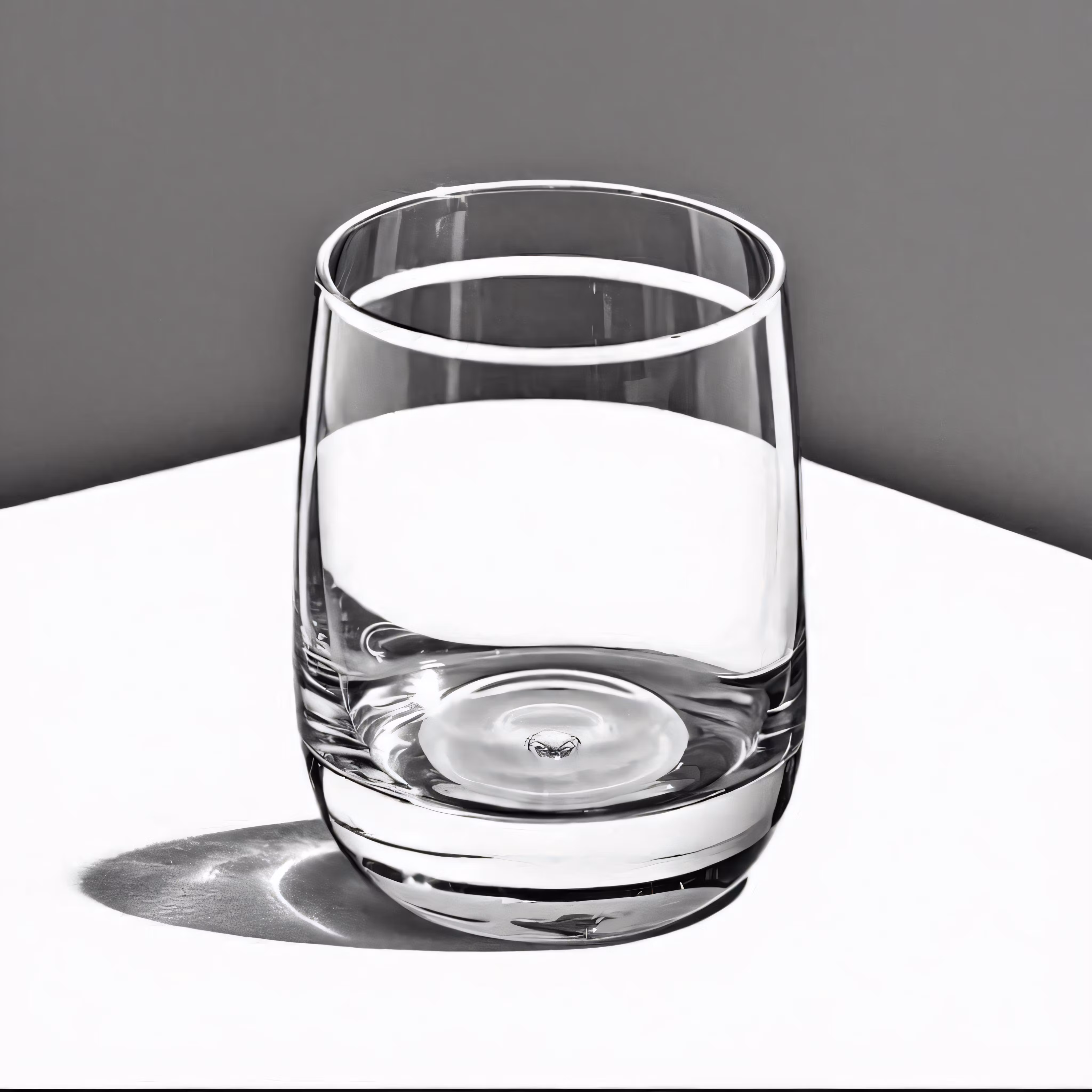 High resolution picture, free to use, a clear glass with water inside sits on a table