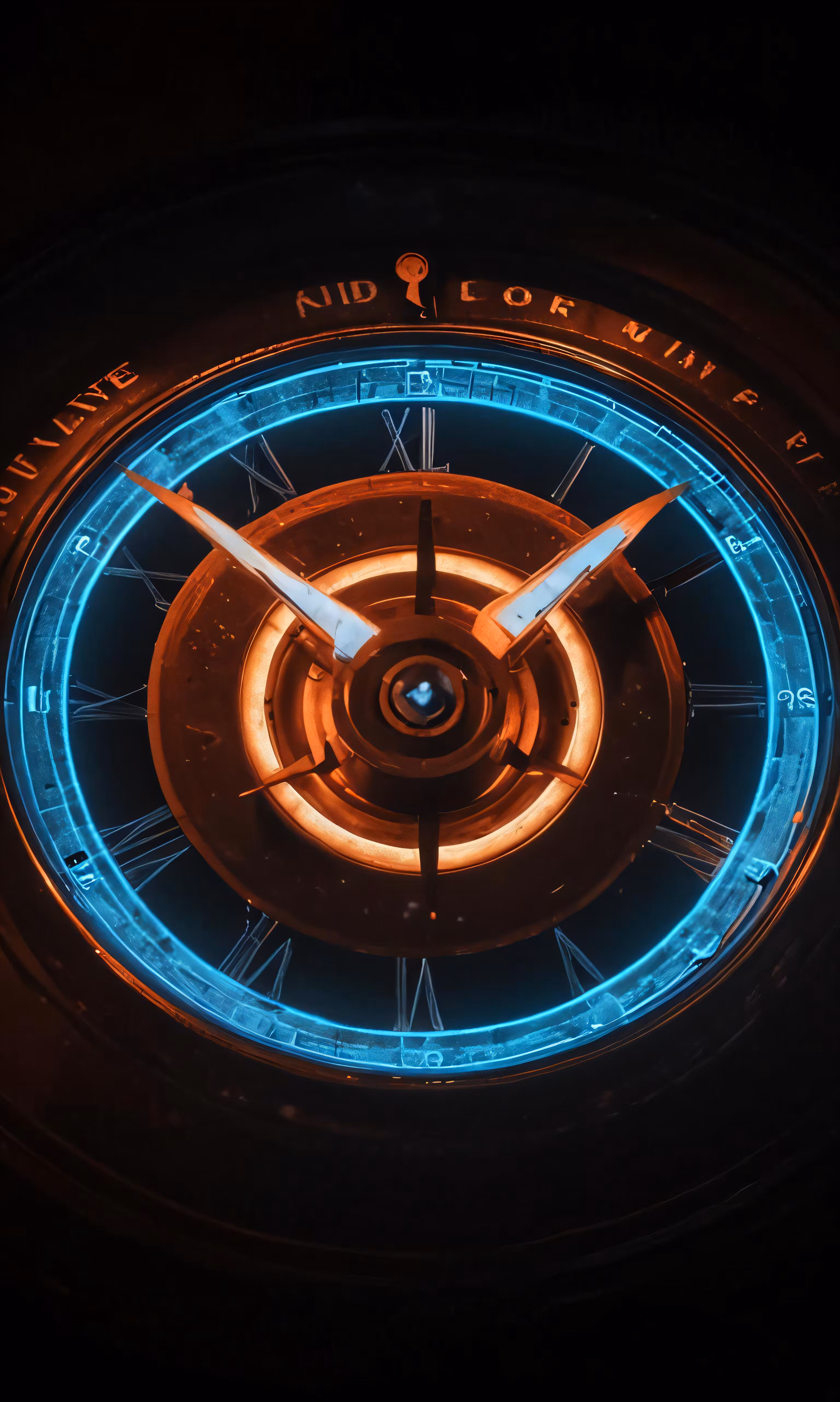High resolution picture, free to use, a clock has a glowing dial and the time is 12 30