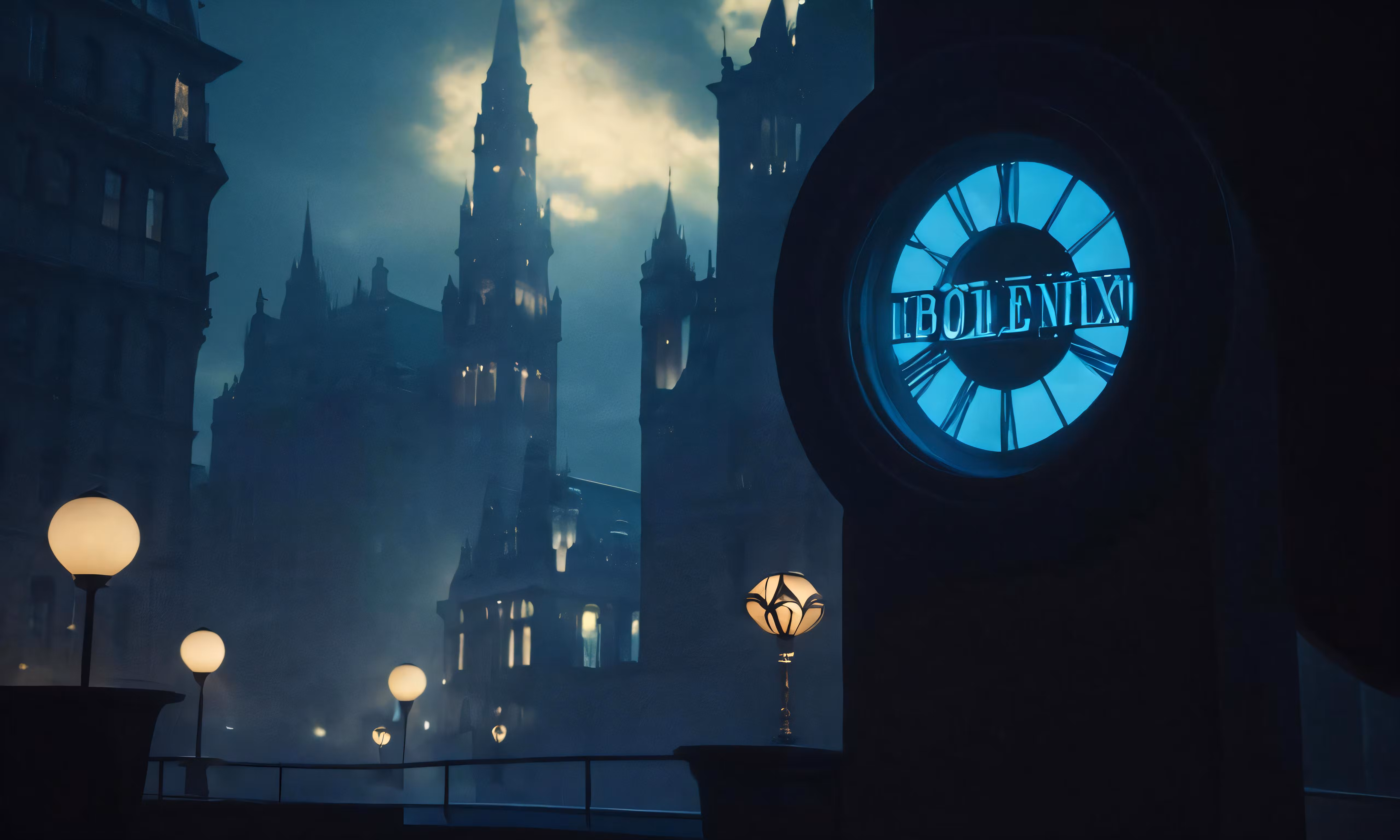 High resolution picture, free to use, a clock sits on the edge of a balcony overlooking buildings
